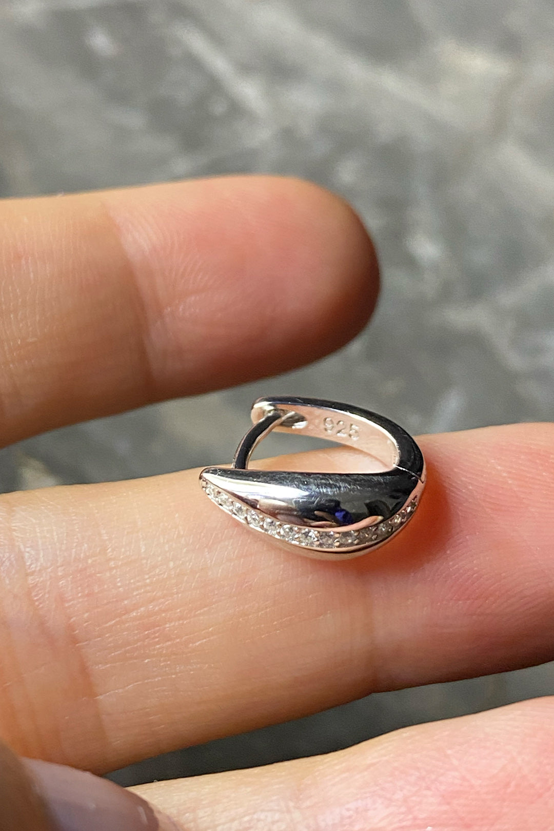 Ortası Taş Detay Süzme U Gümüş Küpe
