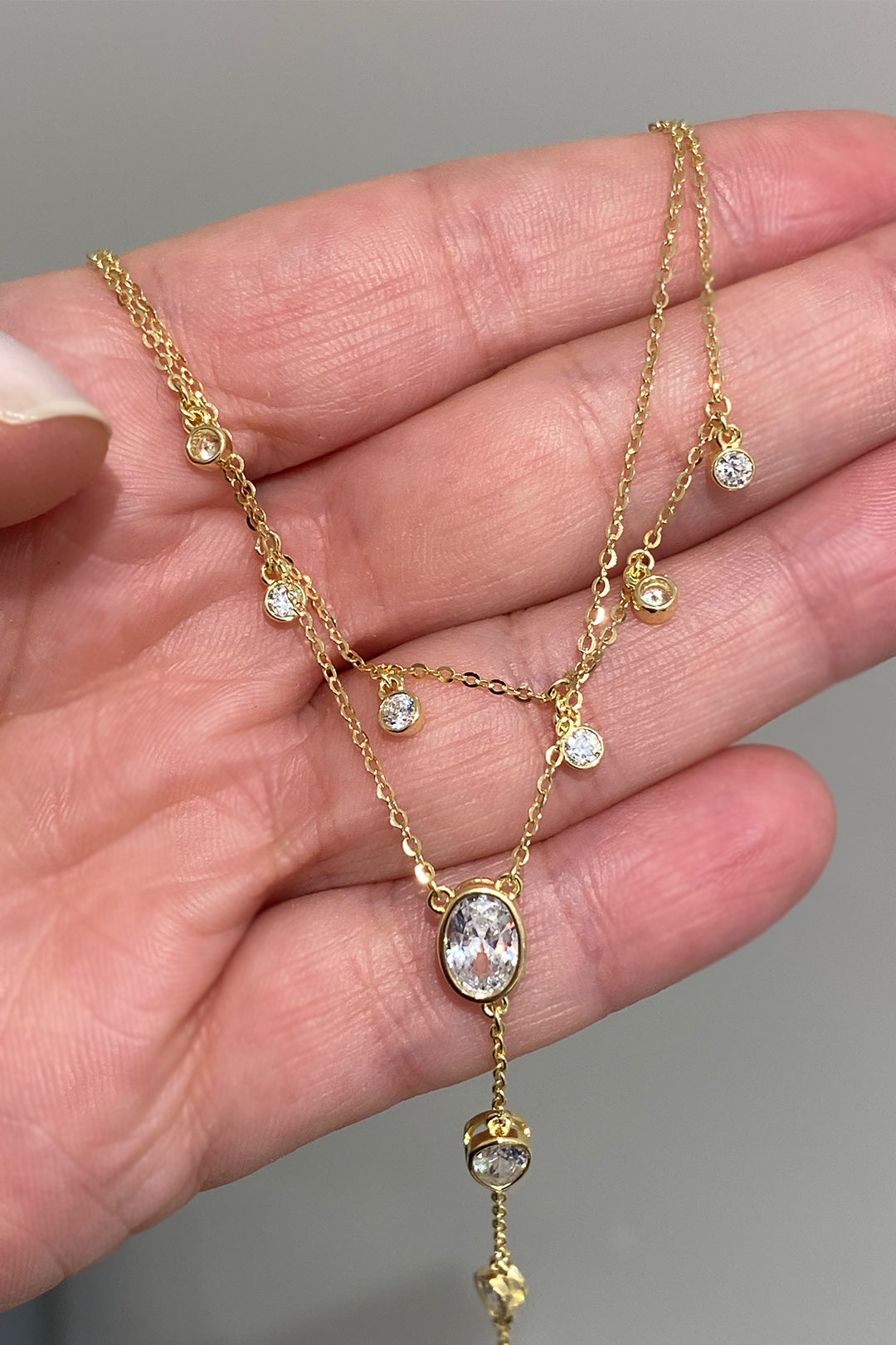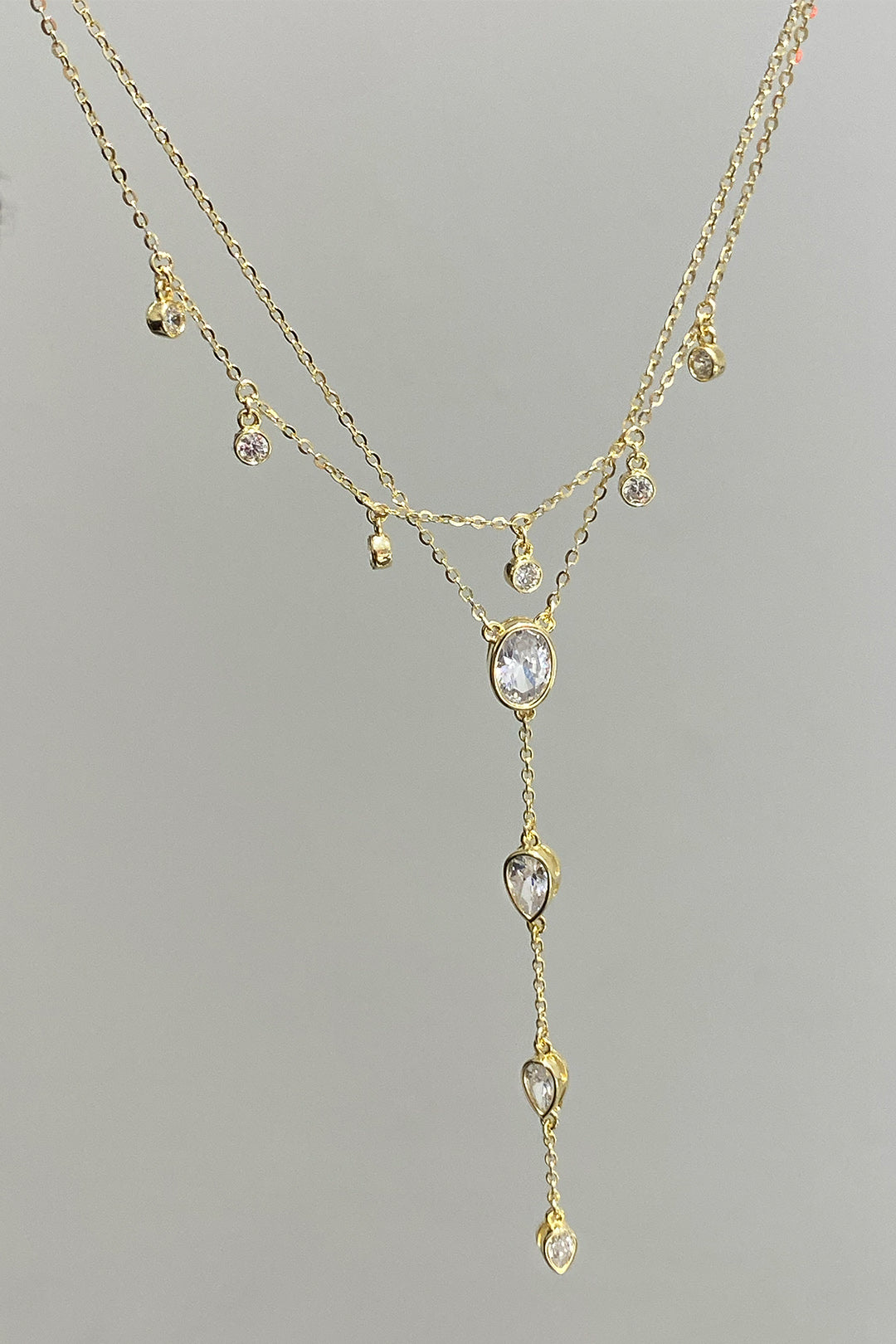 Oval Damla Ve Tohum İkili Gümüş Y Kolye