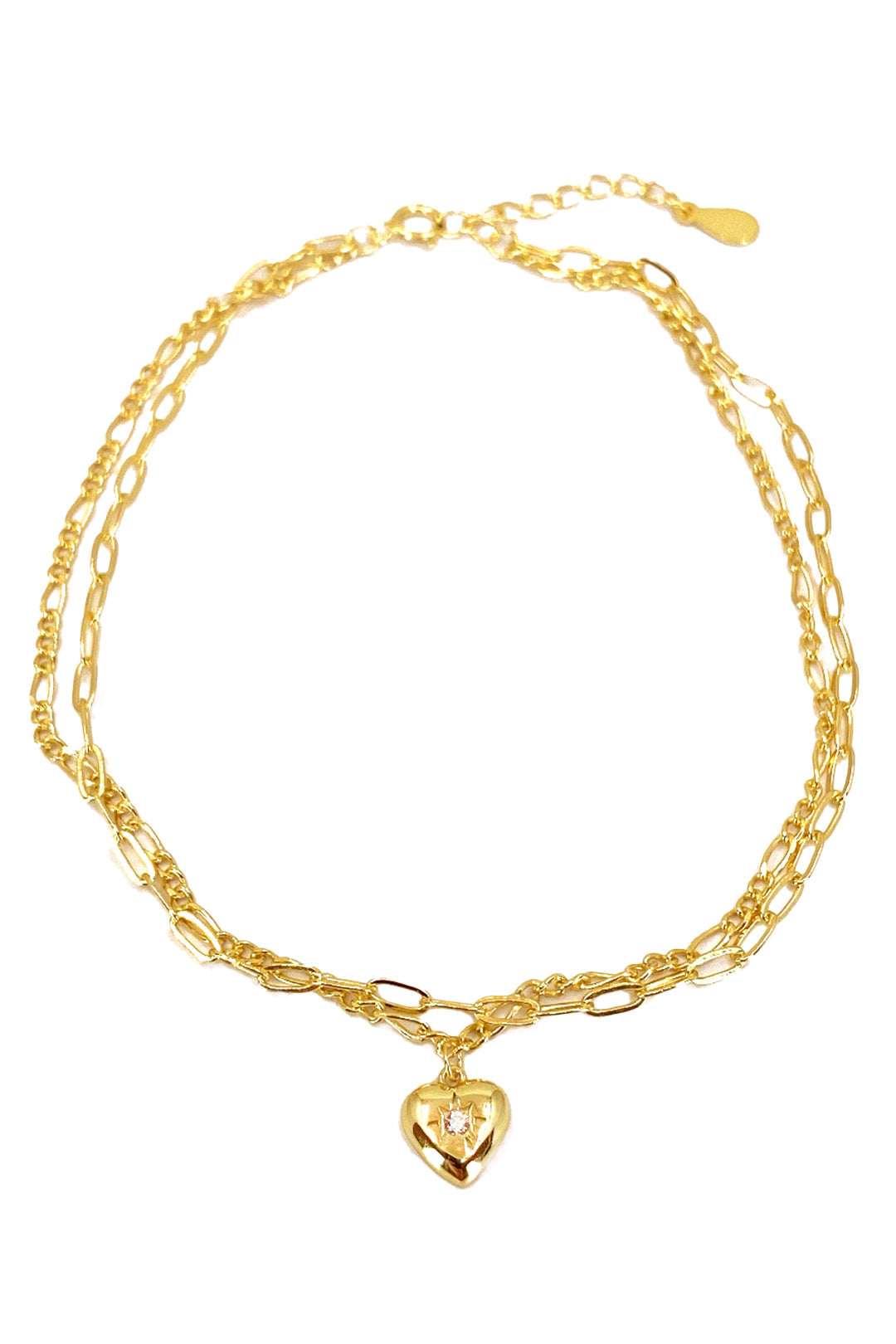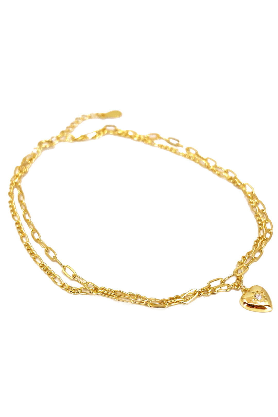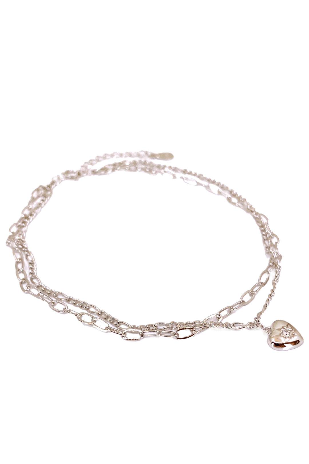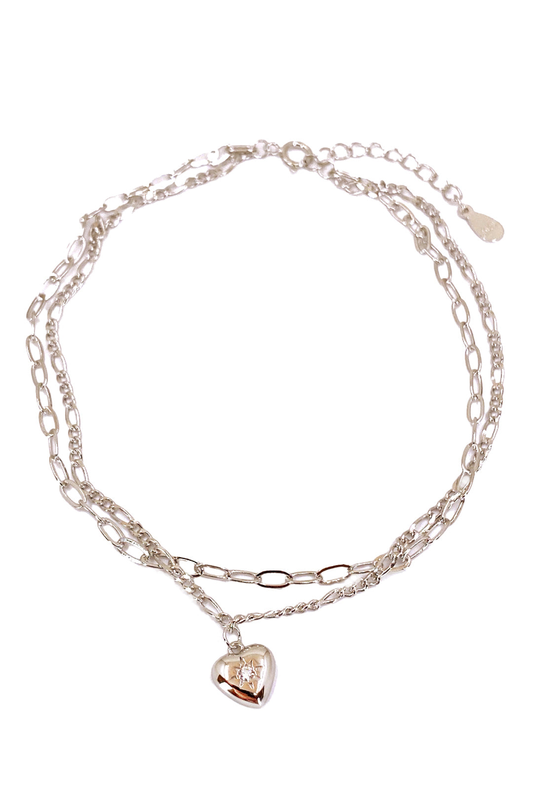 Oval ve Figaro Zincir İkili Bomby Kalp Gümüş Halhal