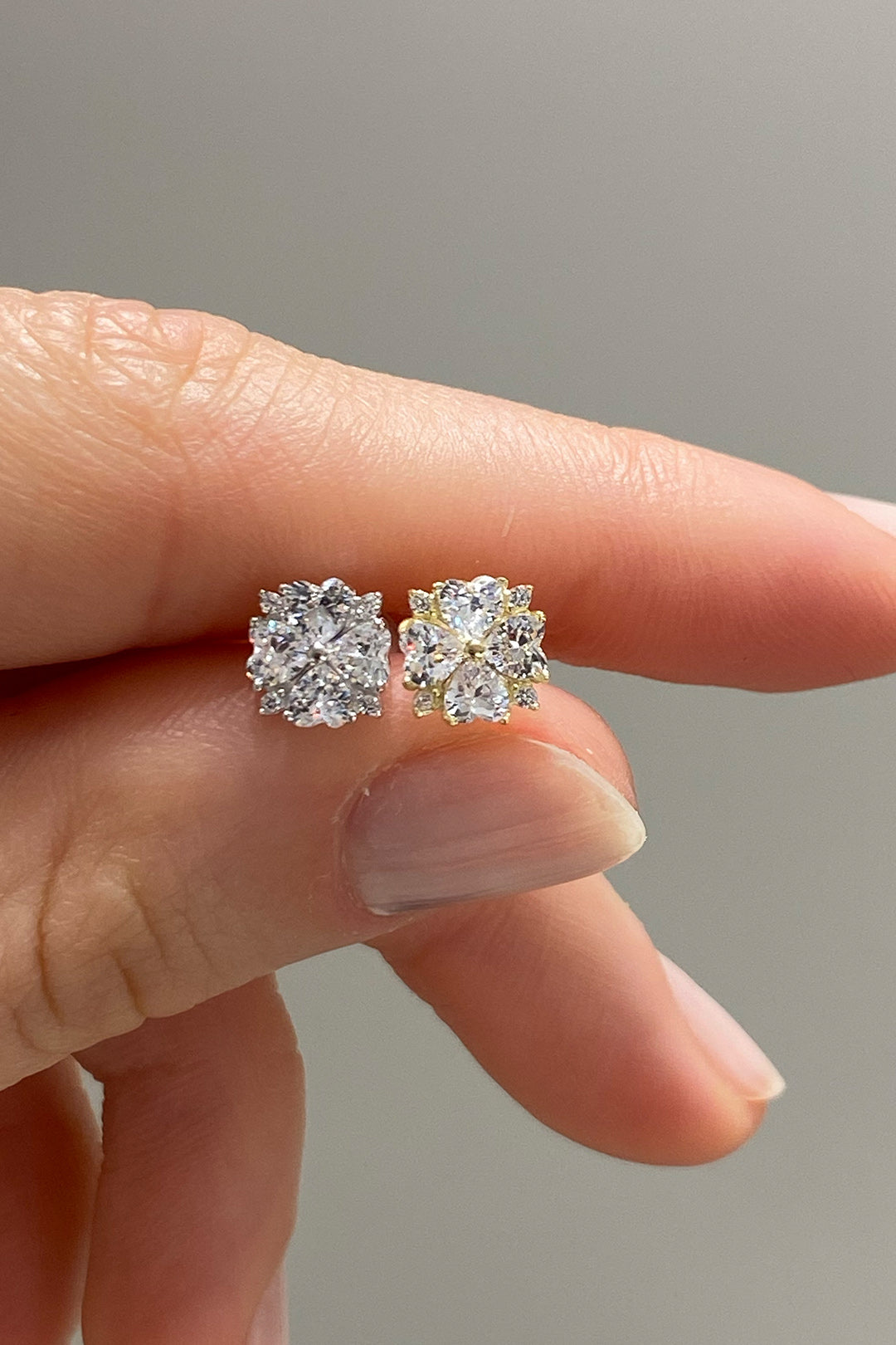 Parıltılı Dört Kalp Çiçek Gümüş Çivili Küpe