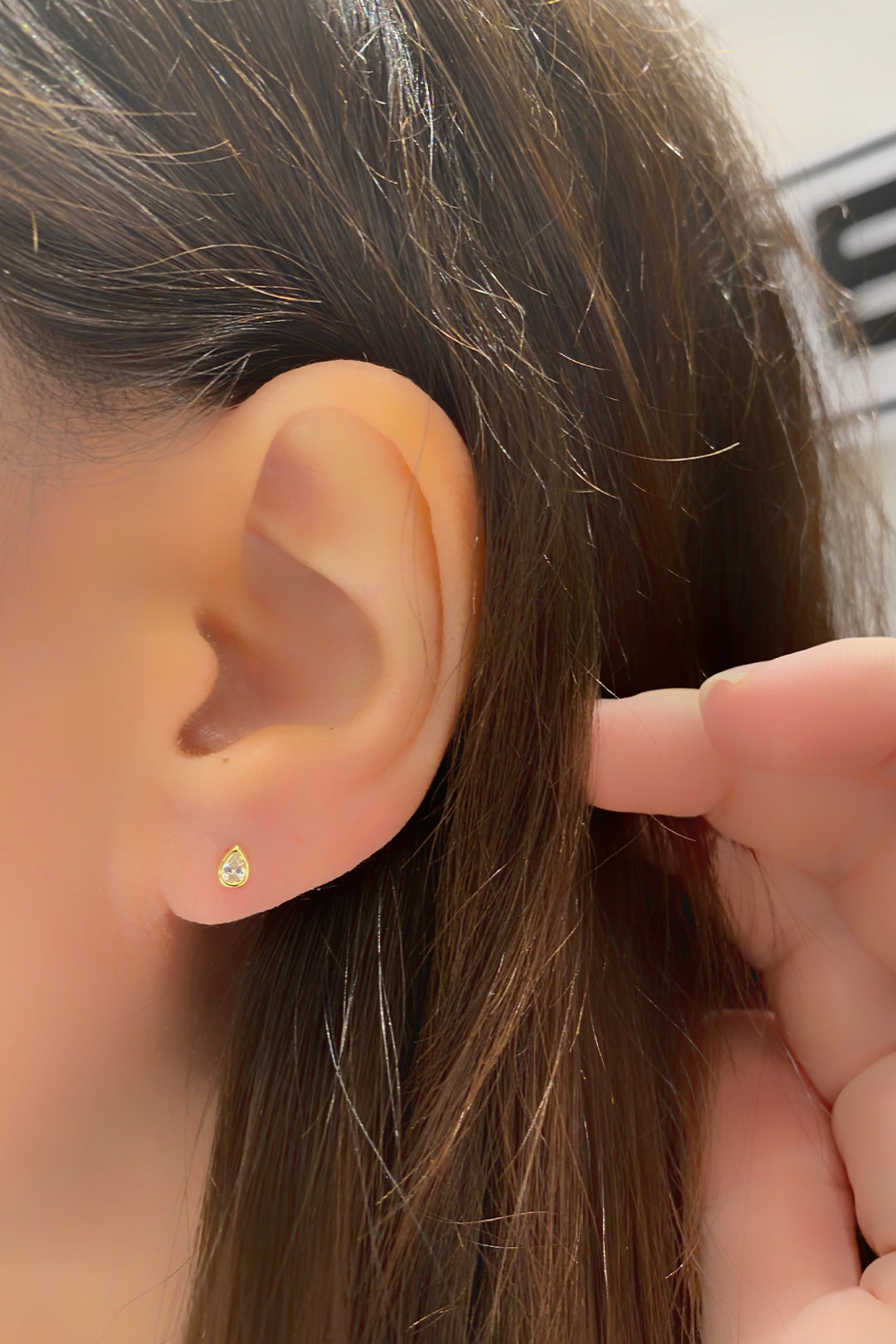 S Beyaz Sıvama Damla Gümüş Çivili Küpe