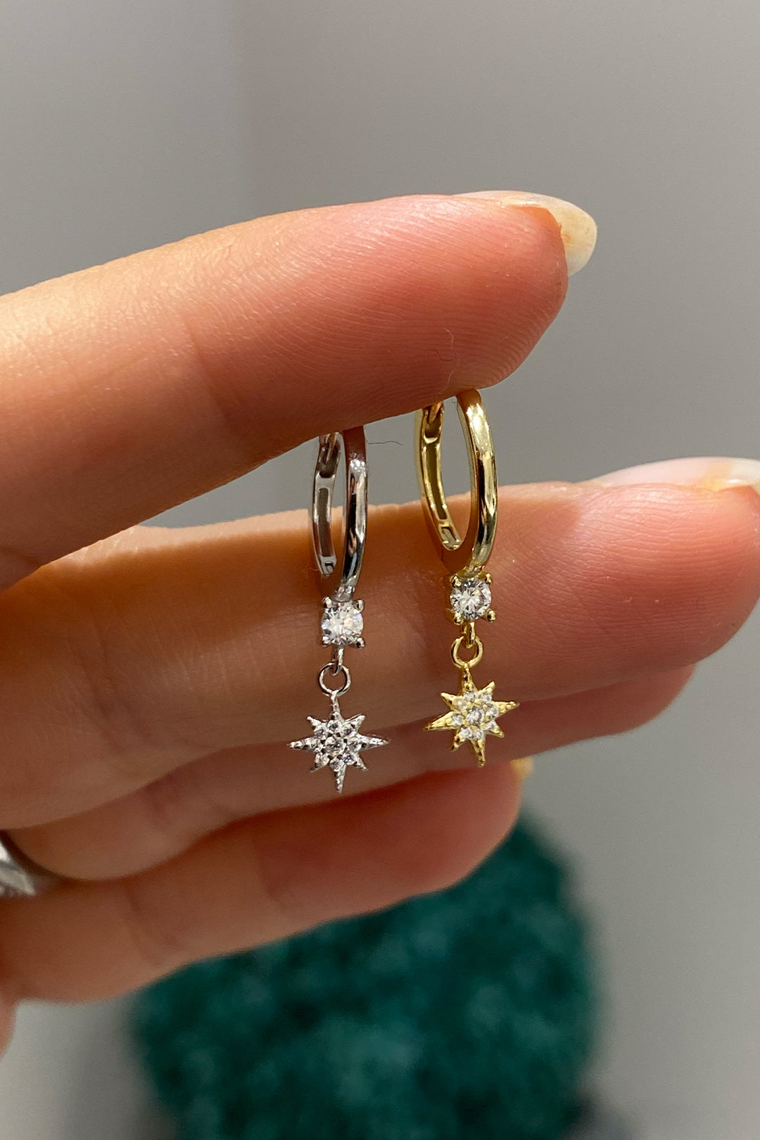 Sabit Tektaş ve Kutupyıldızı Sallantılı Gümüş Küpe