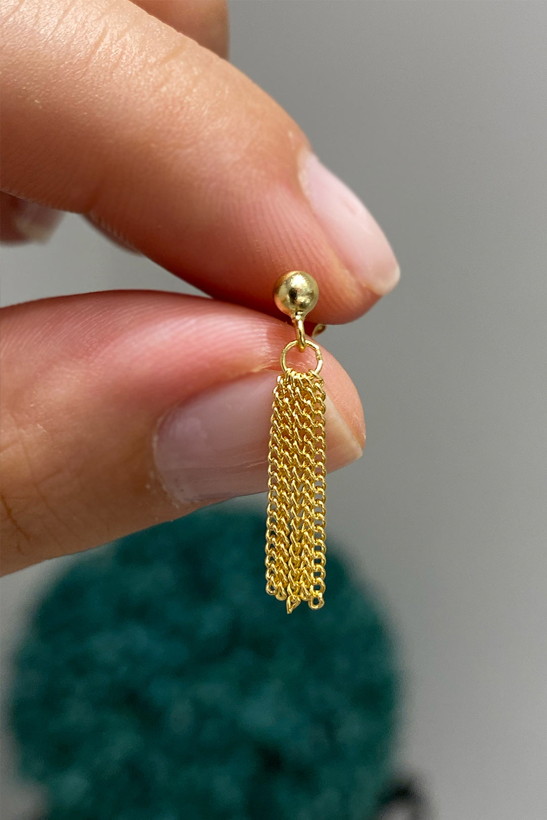 Saçaklı Top Zincir Gümüş Çivili Küpe