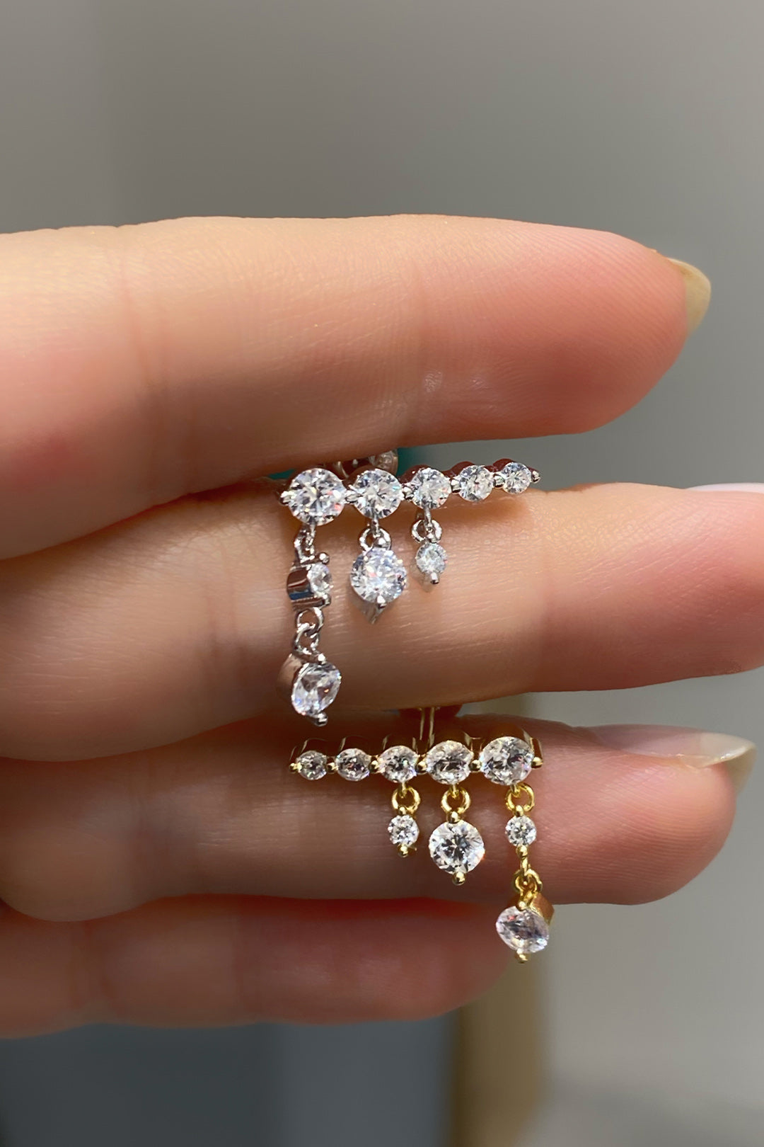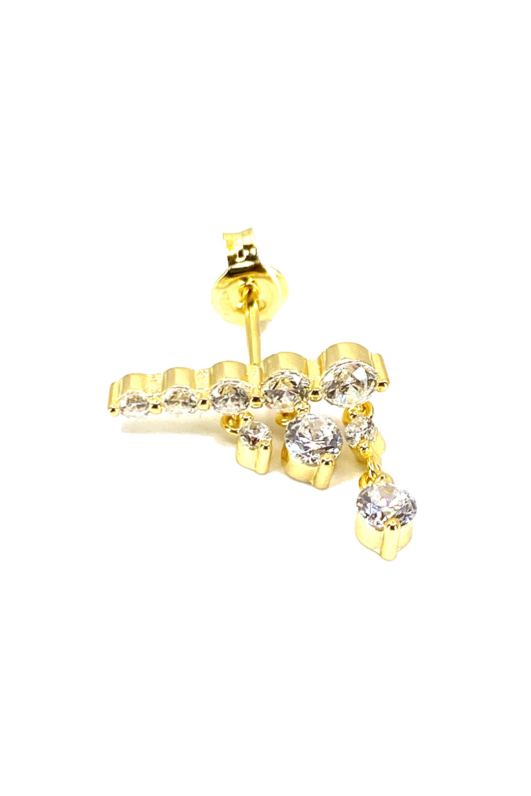 Sallantılı Taş Detay Yatay Çubuk Gümüş Çivili Küpe