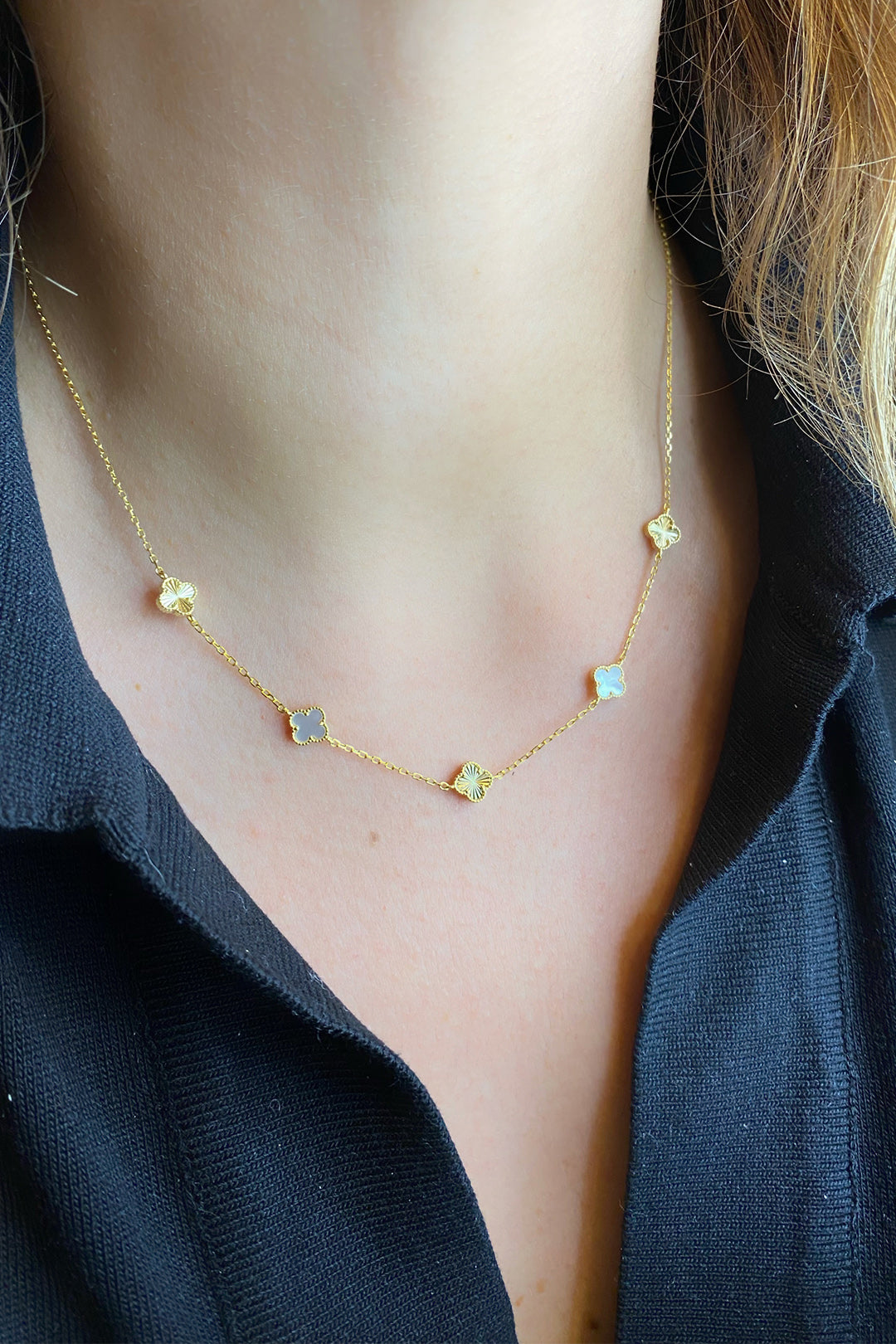 Sedef Ve Çarkıfelek Beş Vanc Gümüş Kolye