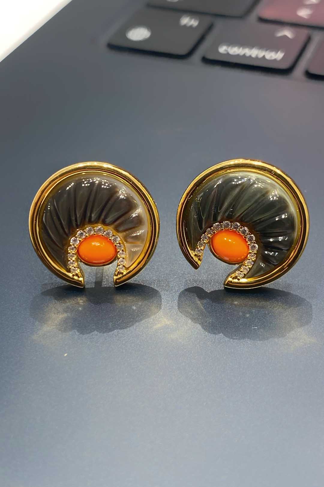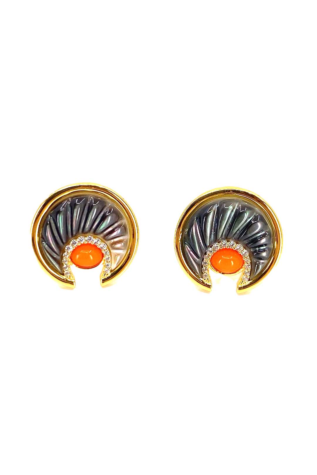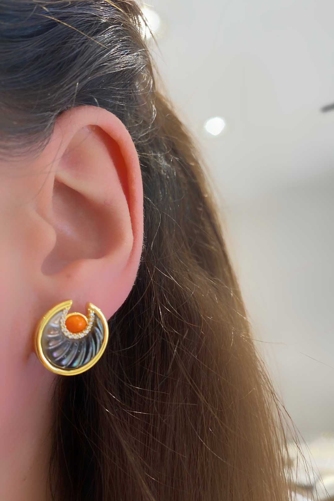 Sedef ve Turuncu Detay Ay Gümüş Küpe