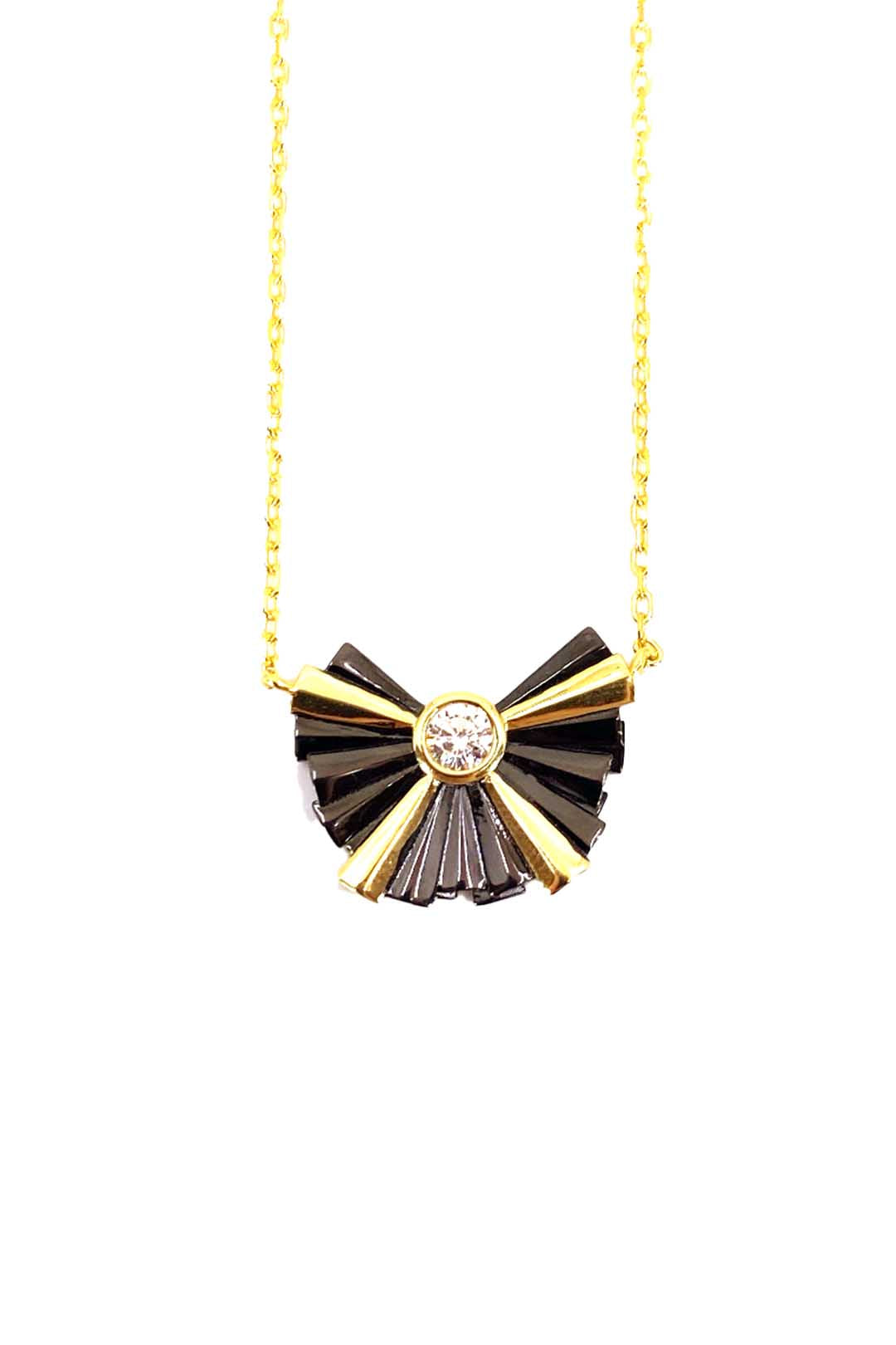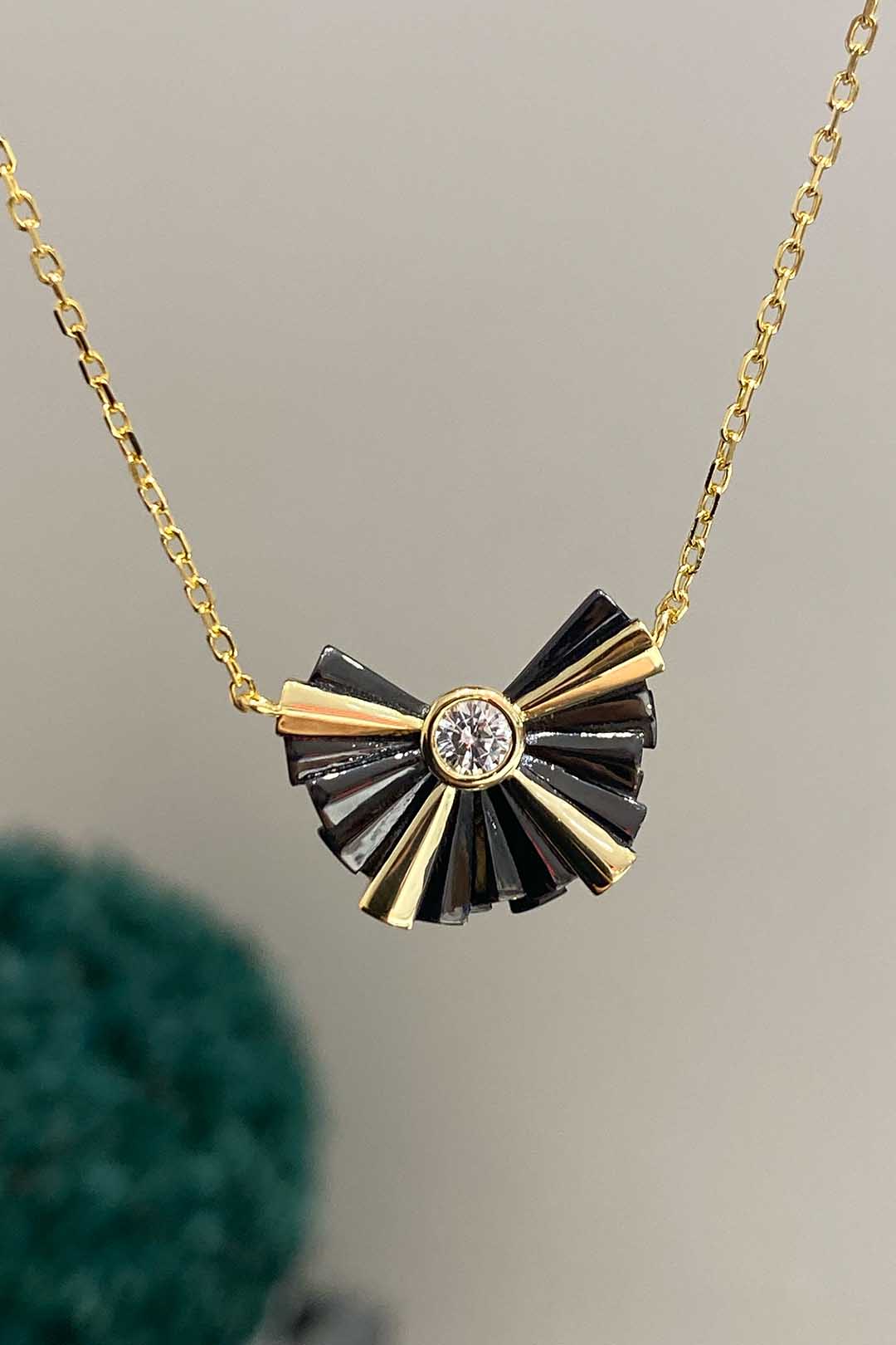 Siyah Rodyum Detay Yelpaze Gümüş Kolye