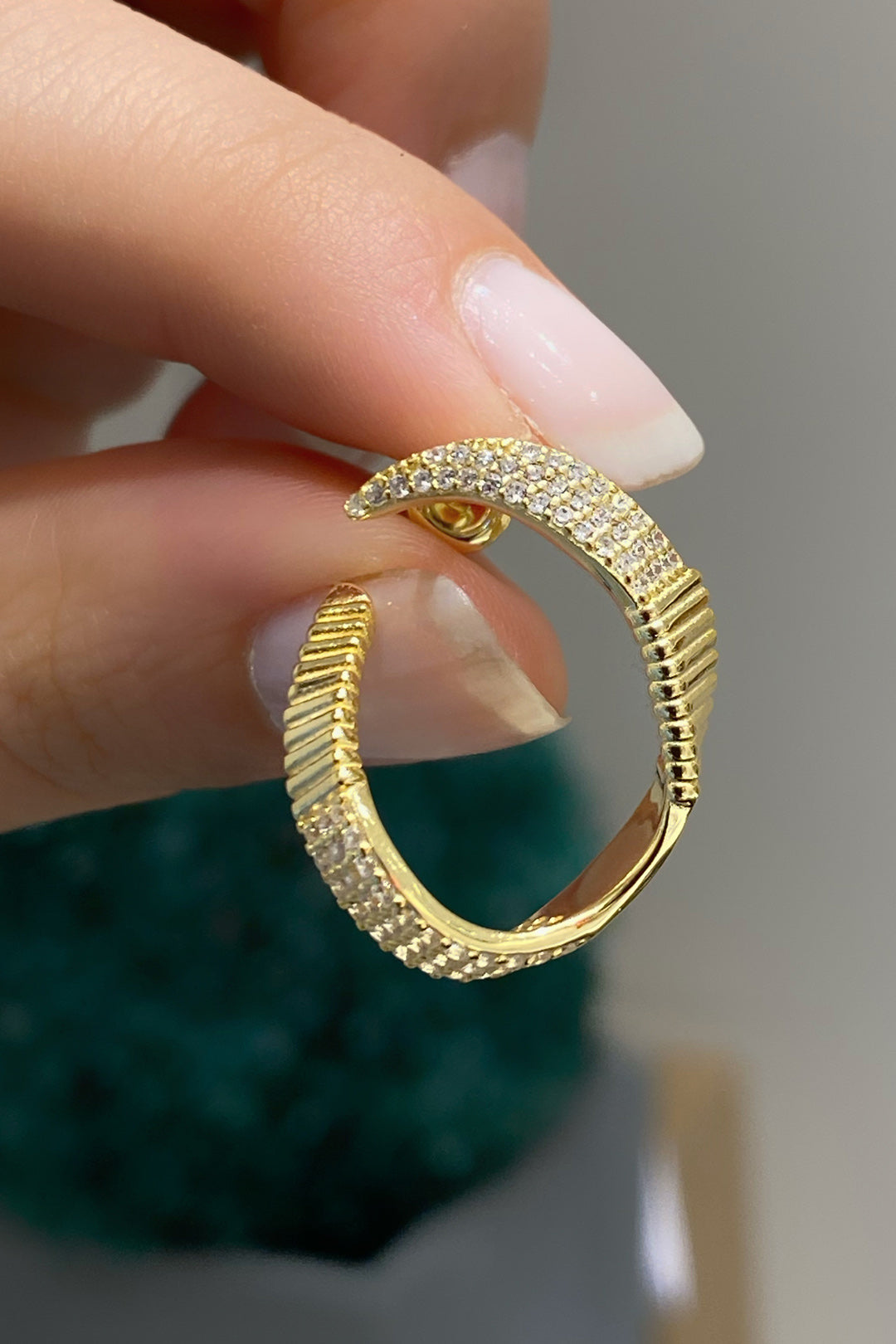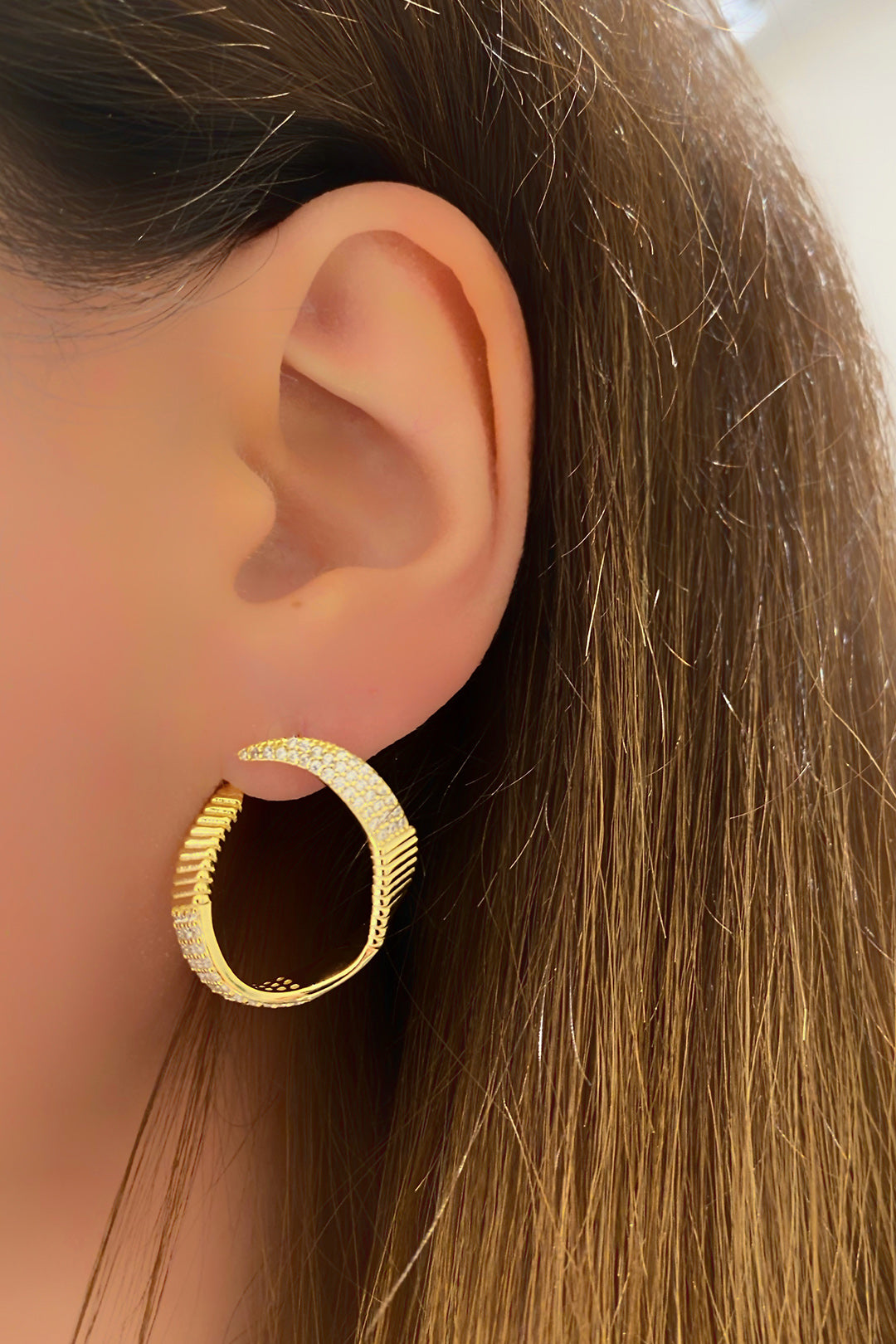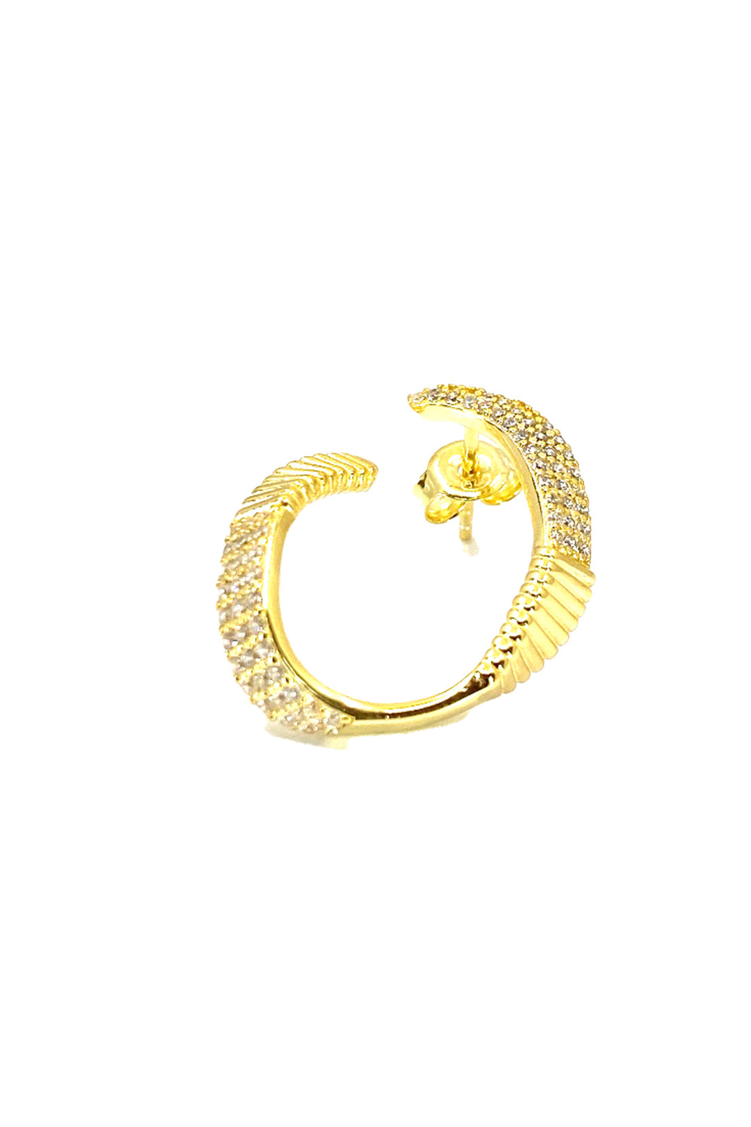Taş Detay Çizgili Köşeli C Gümüş Küpe