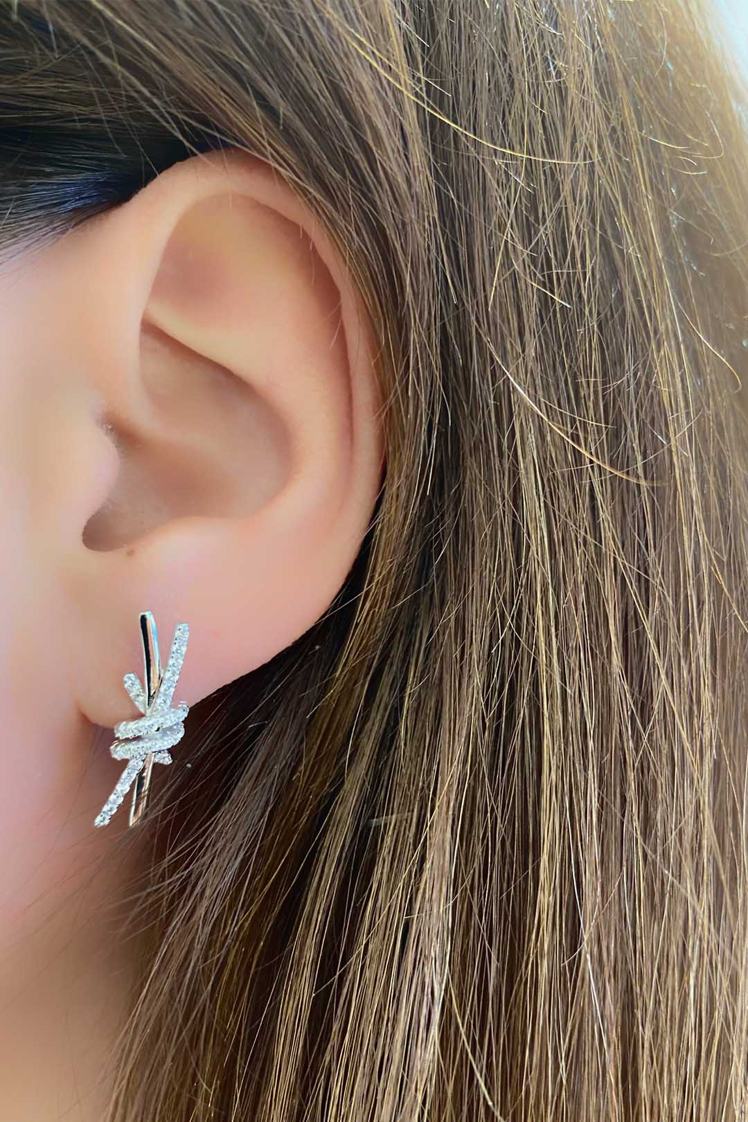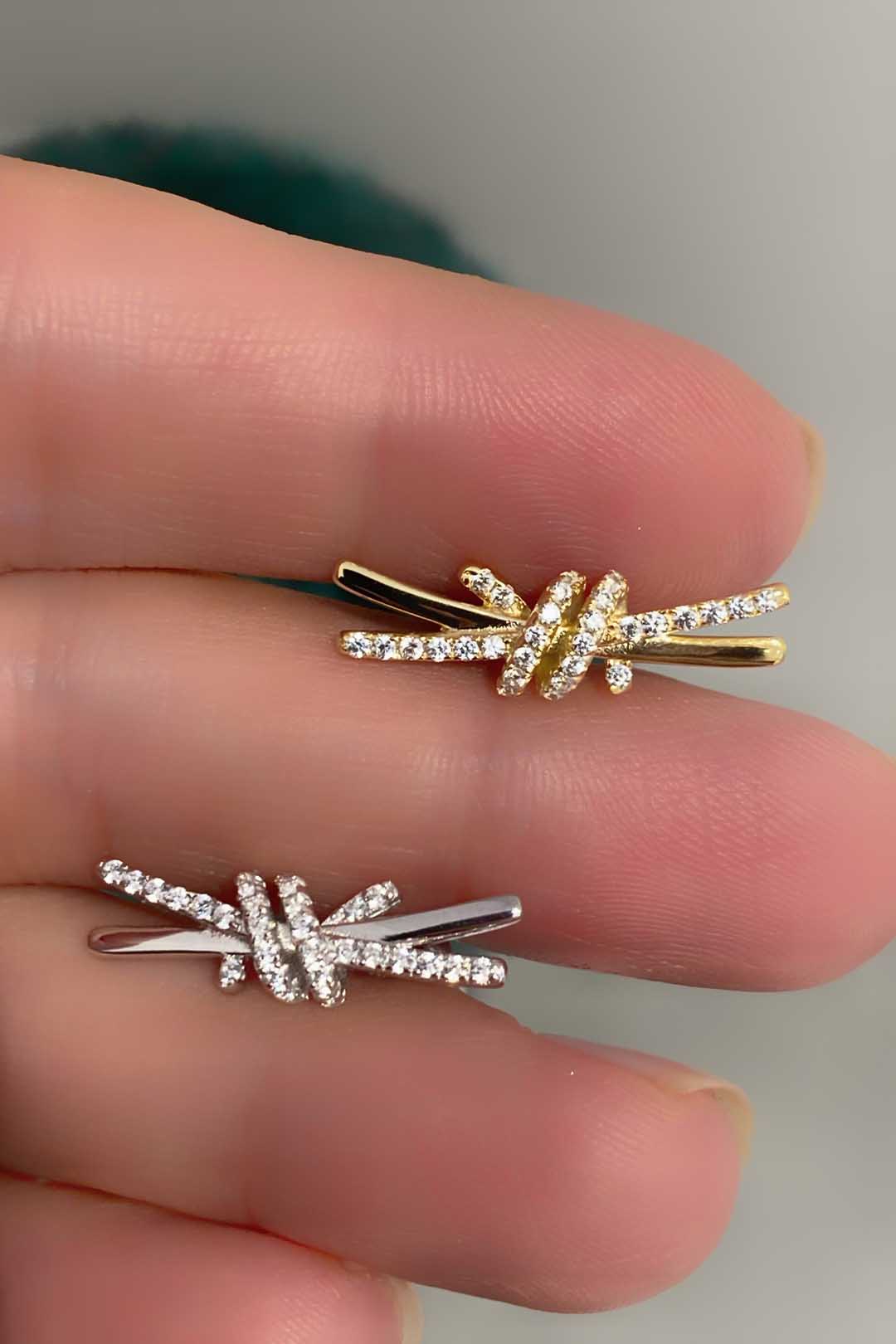 Taşlı Düğüm Detay Gümüş Çivili Küpe
