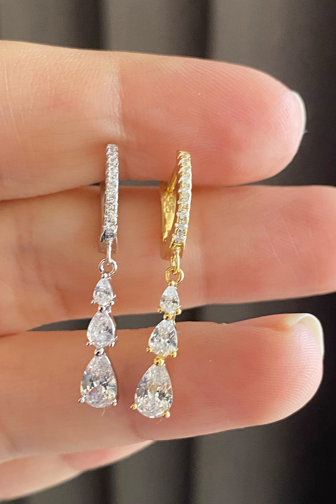 Taşlı Üç Mix Damla Sallantılı Gümüş Küpe