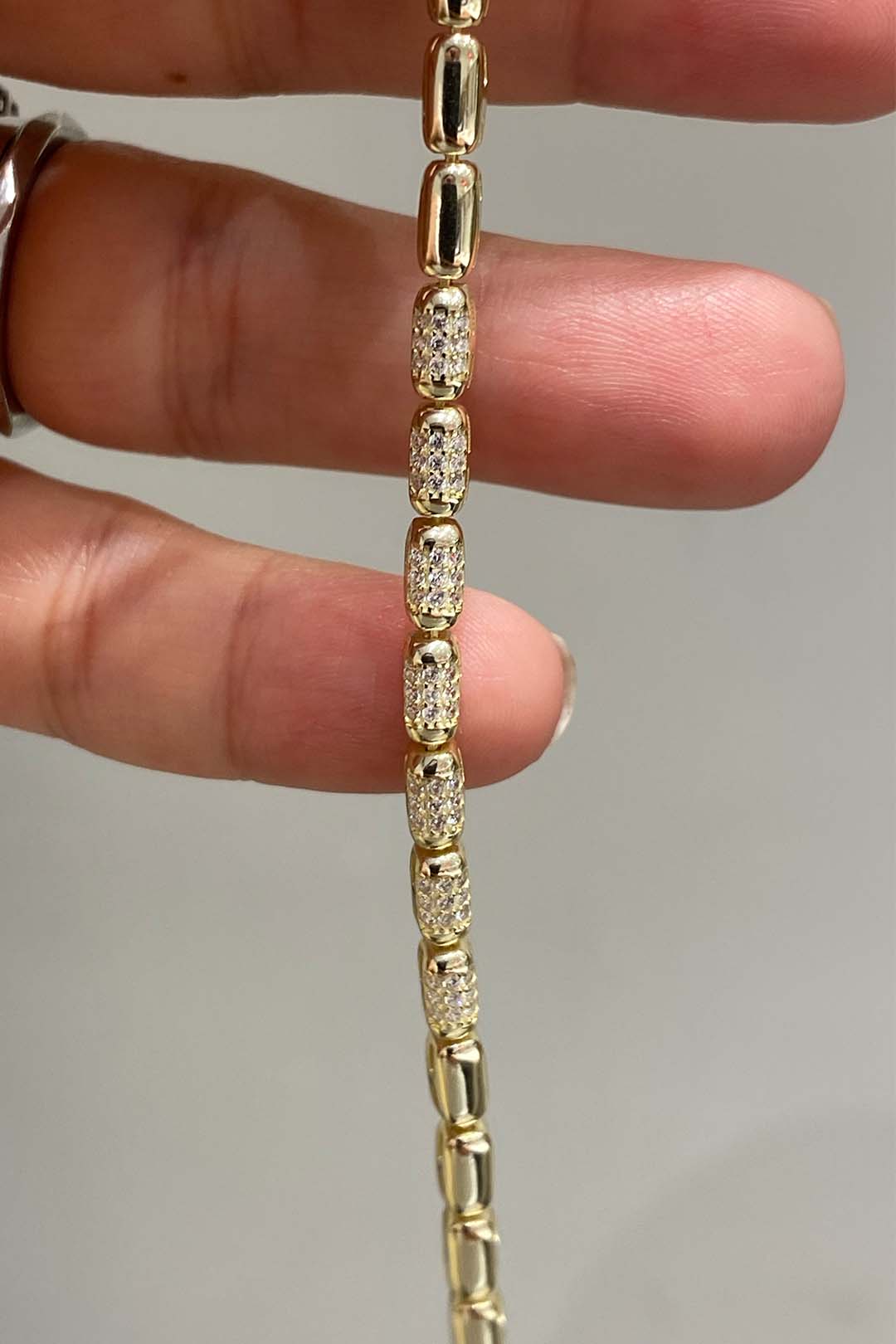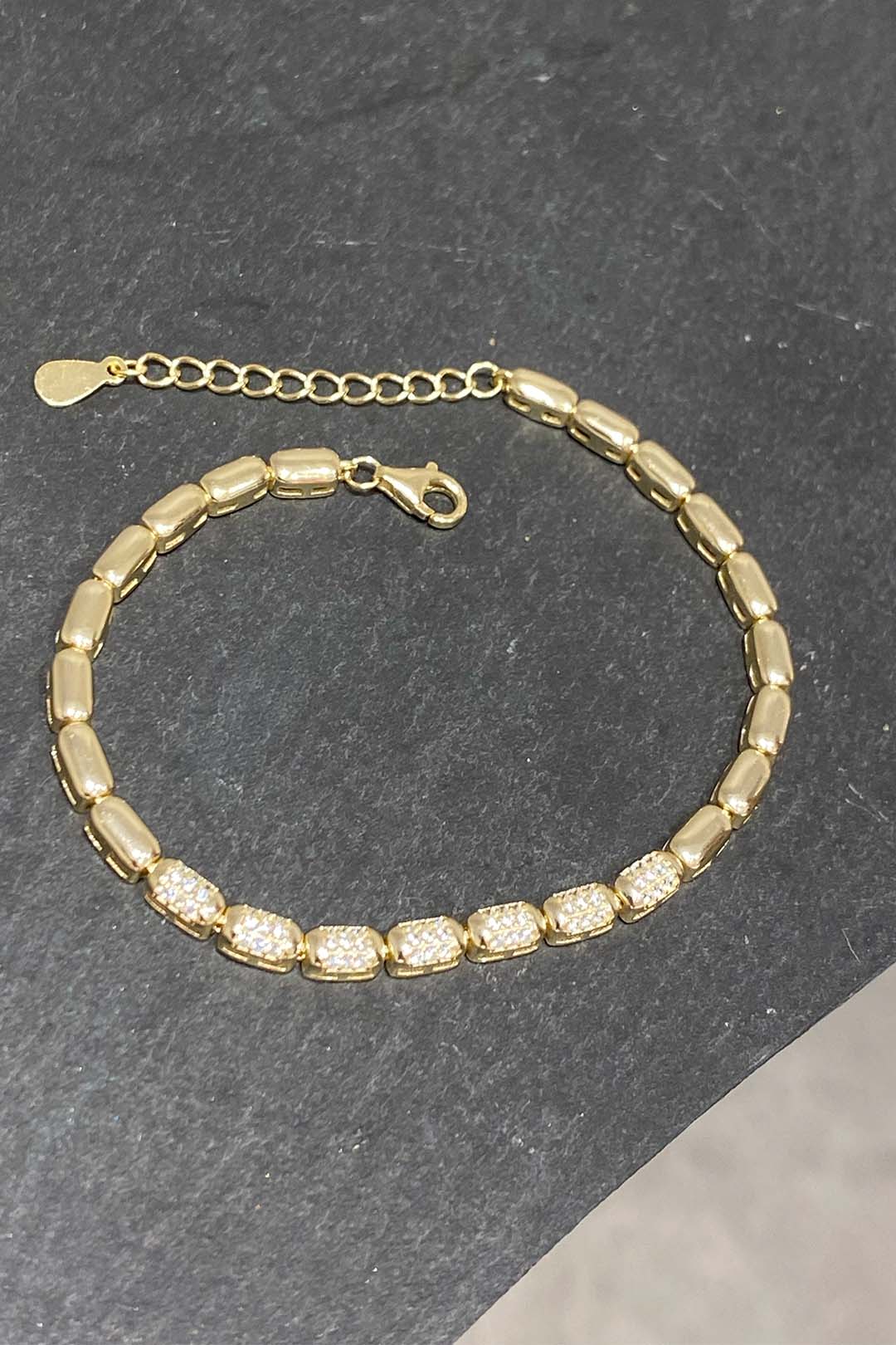 Taşlı ve Taşsız Dikdörtgen Bakla Gümüş Bileklik