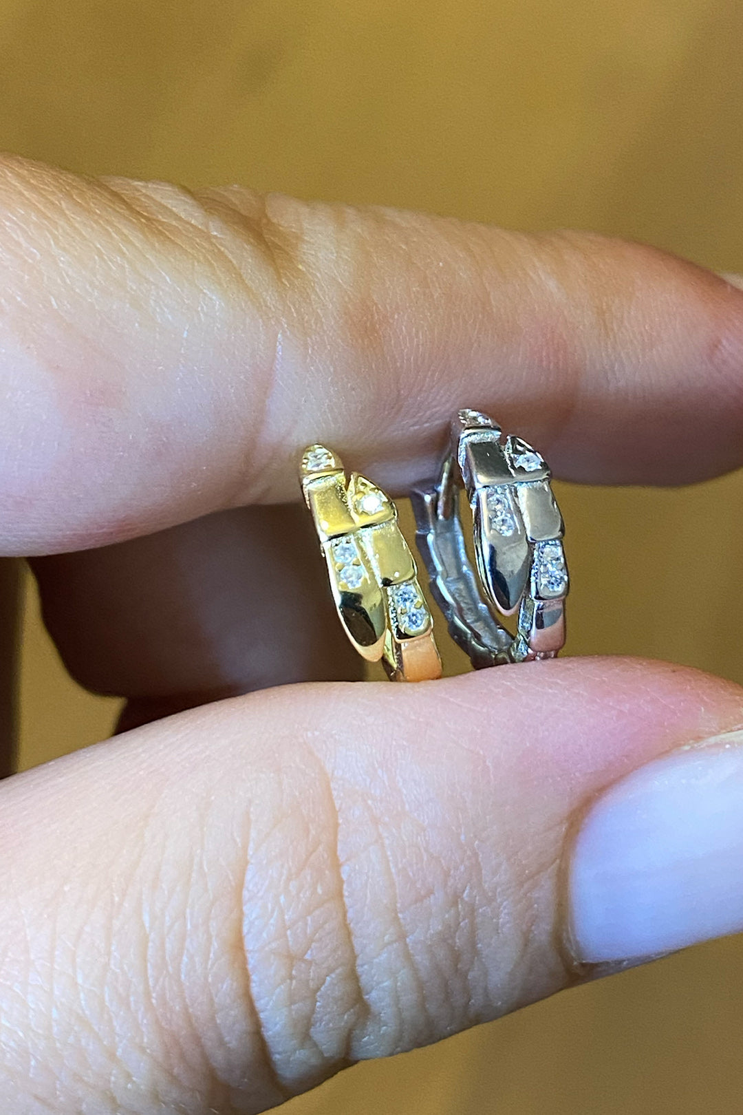 Taşlı Ve Taşsız Minimal Yılan Desen Gümüş Halka Küpe