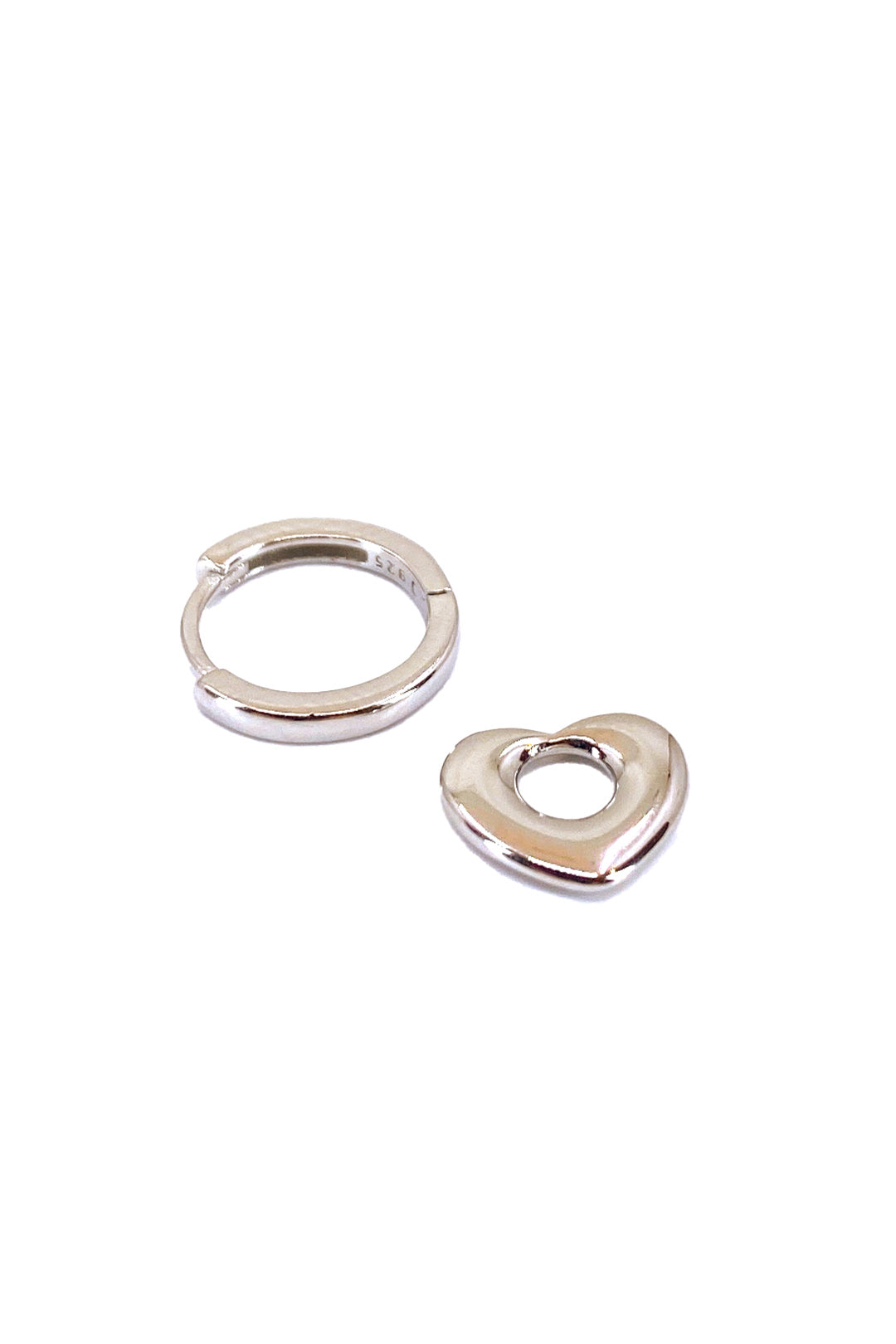 Taşsız İçi Boş Kalp Detay Gümüş Küpe