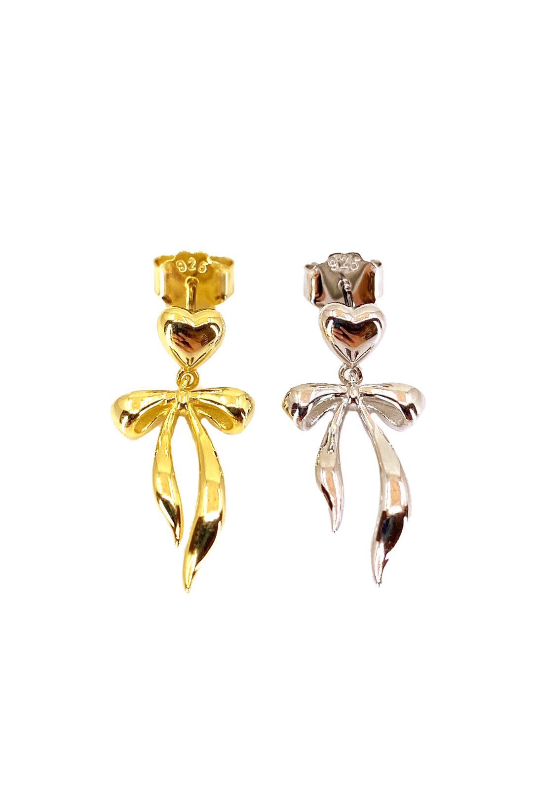Taşsız Kalp Ve Fiyonk Sallantılı Gümüş Çivili Küpe
