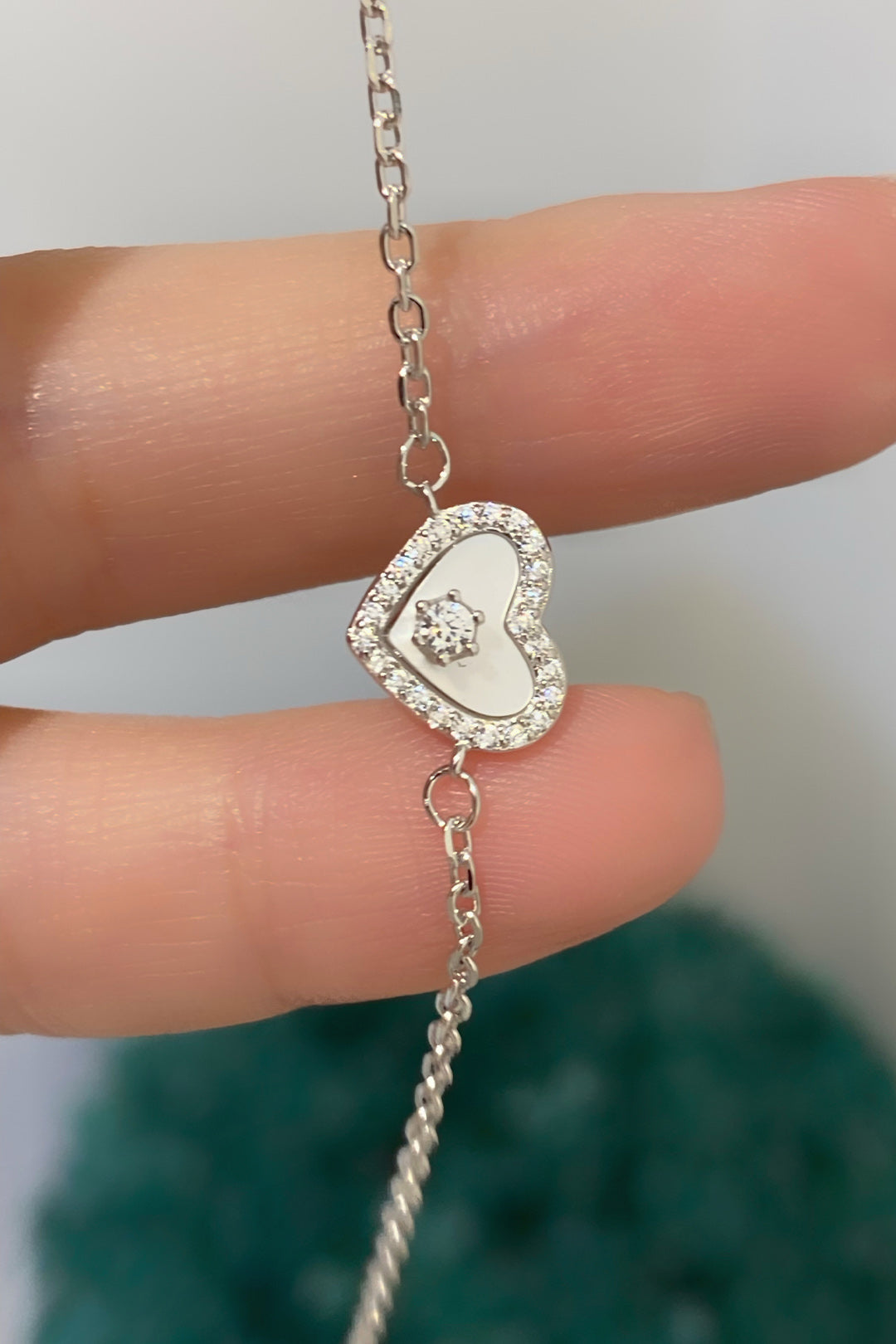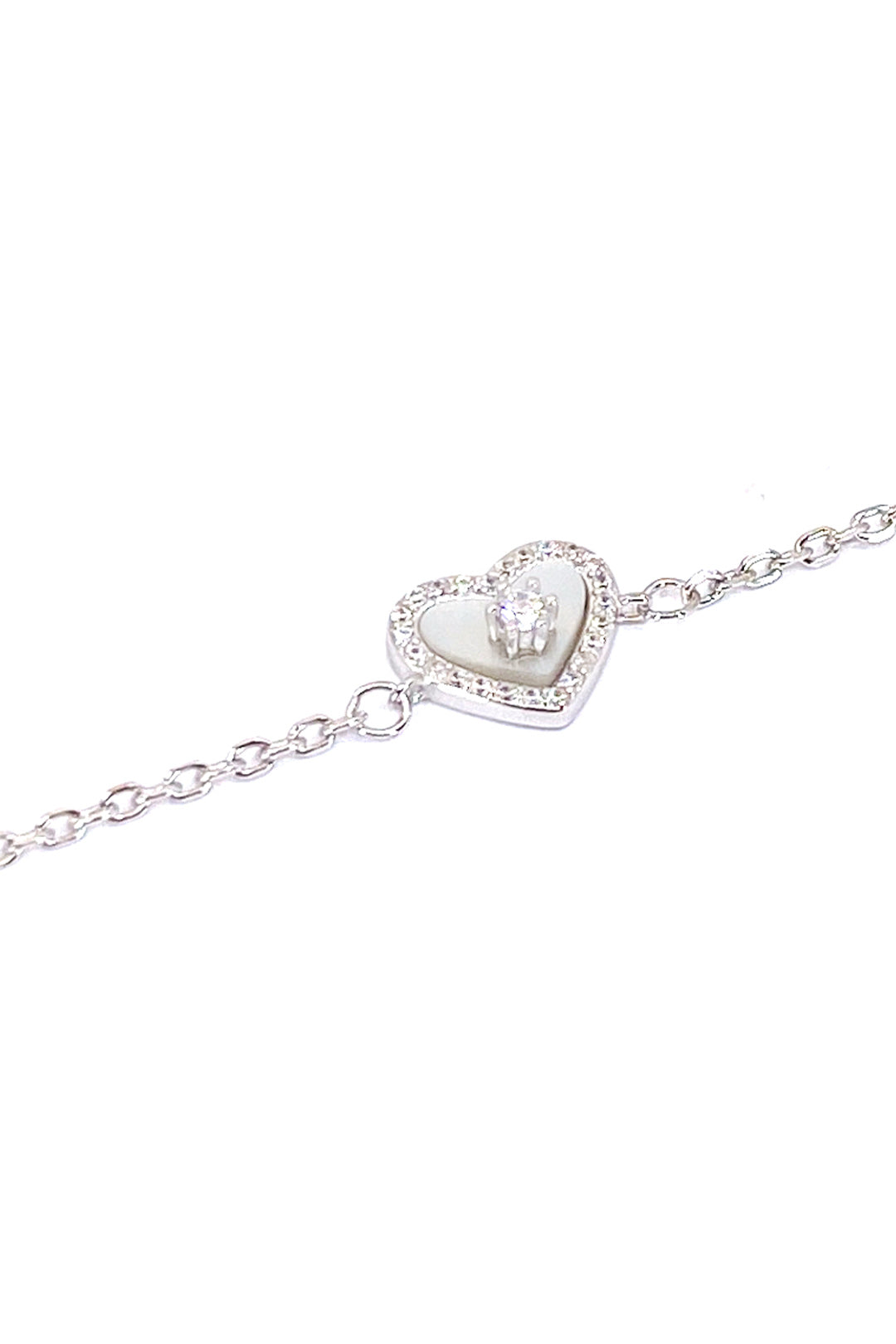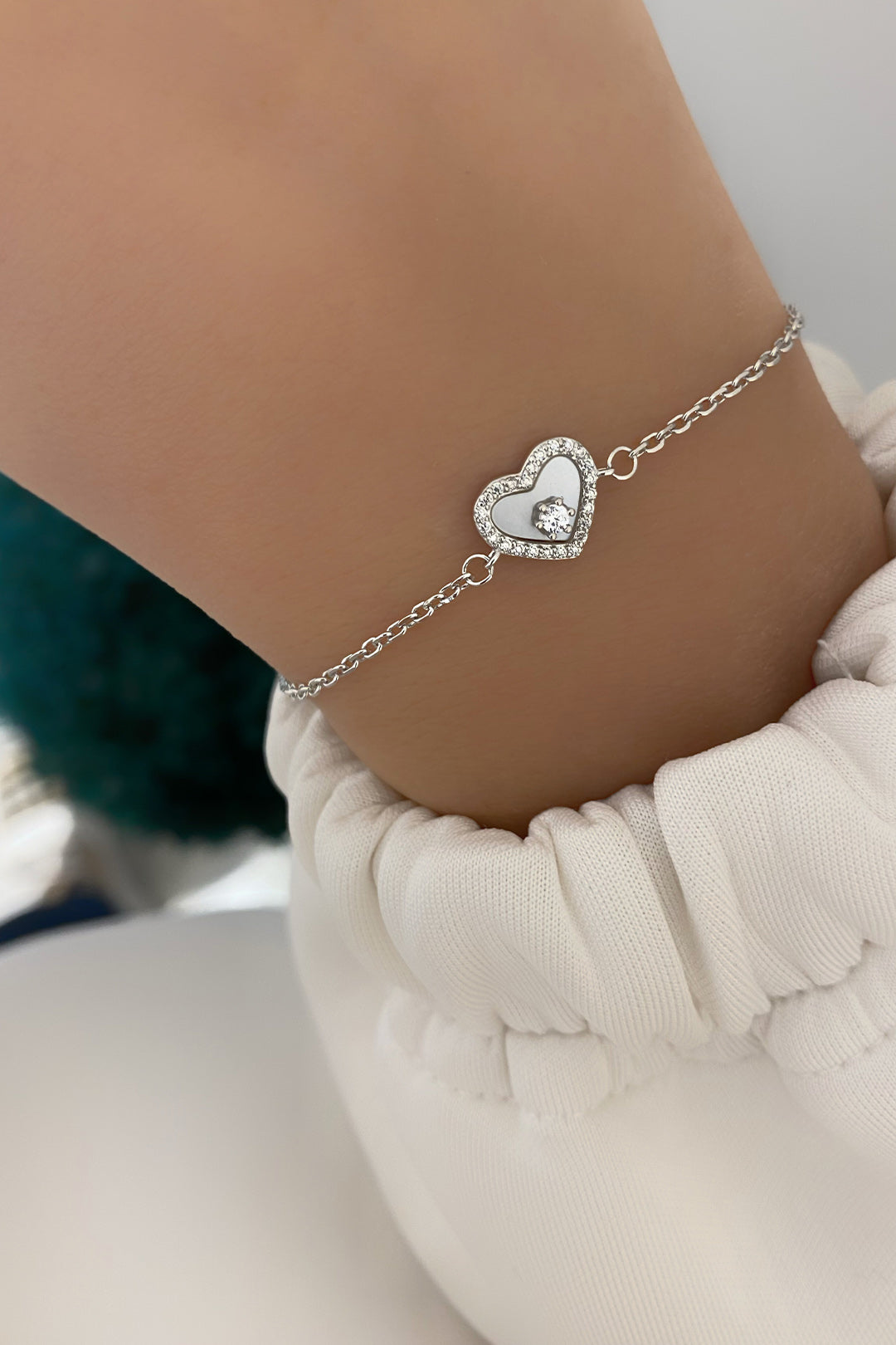 Tektaş Sedef Kalp Detay İnce Gümüş Bileklik