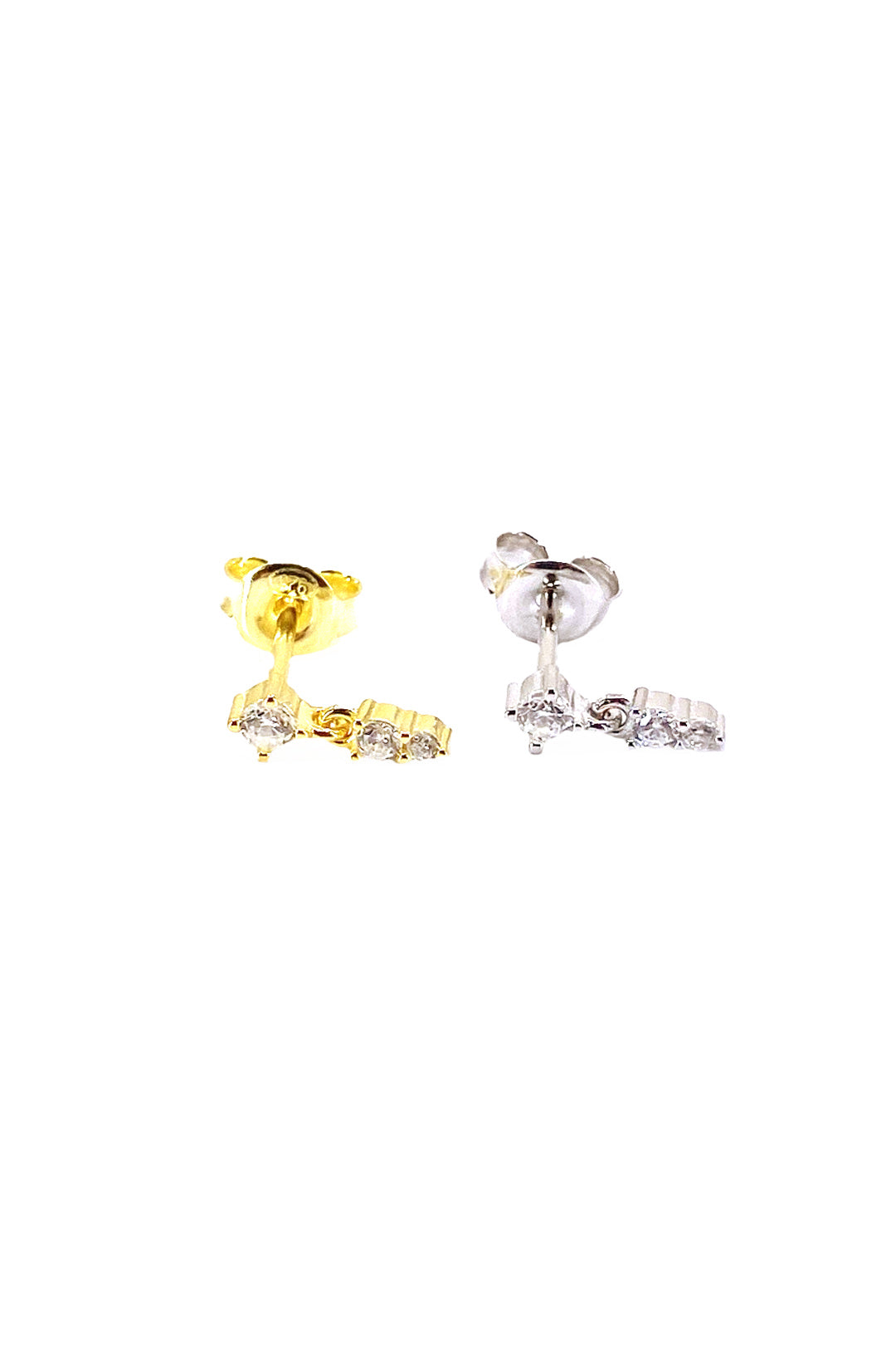Tektaş Ve Altta İki Taş Sallantılı Gümüş Çivili Küpe