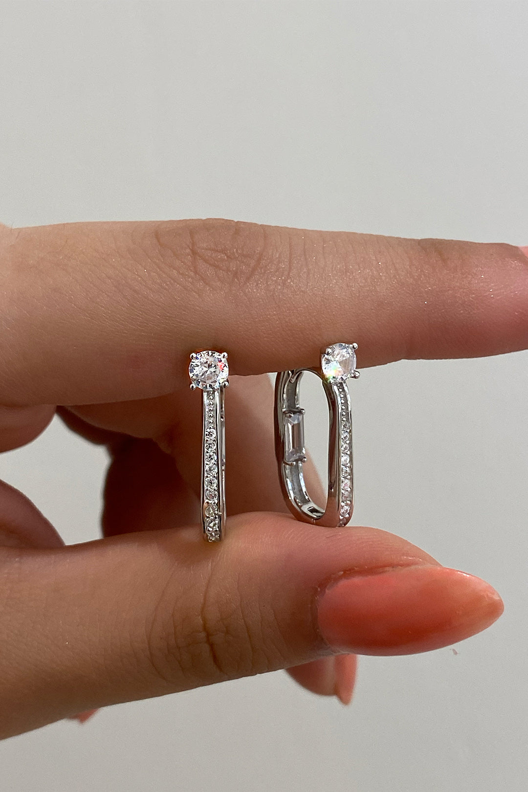 Tektaş Ve Baget Dikdörtgen Gümüş Küpe
