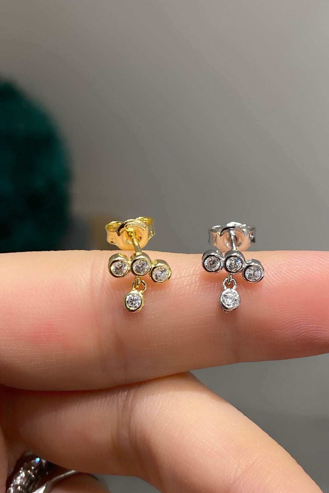 Tohum Sallantılı Üç Tohum Yay Gümüş Çivili Küpe