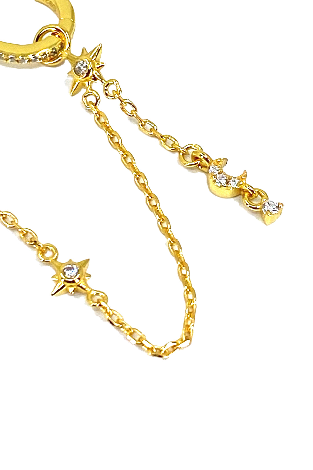 Tohum Yıldız Ve Ay İkili Gümüş Boğum Küpe