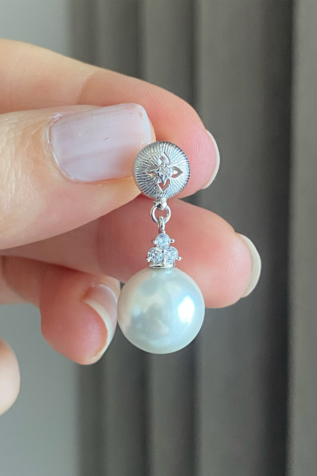 Top İnci Sallantılı Çiçek Desen Gümüş Küpe
