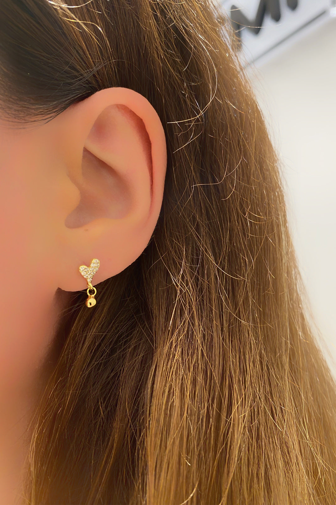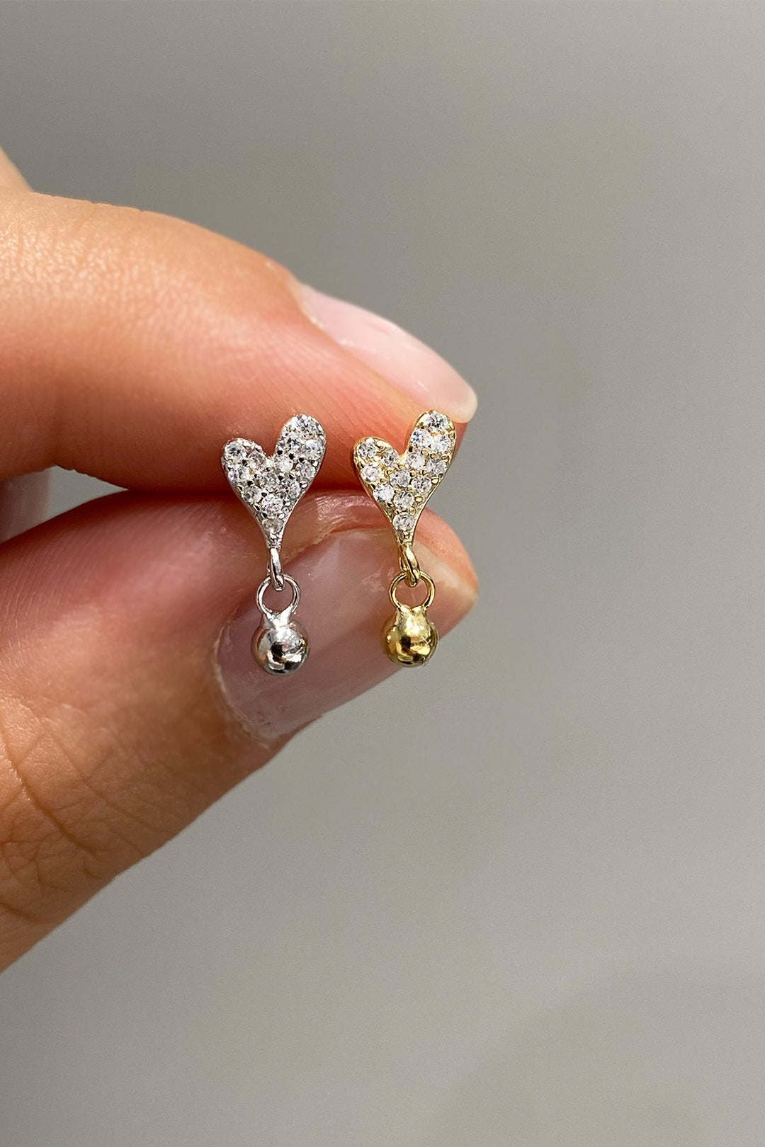 Top Sallantılı Taşlı Kalp Gümüş Çivili Küpe