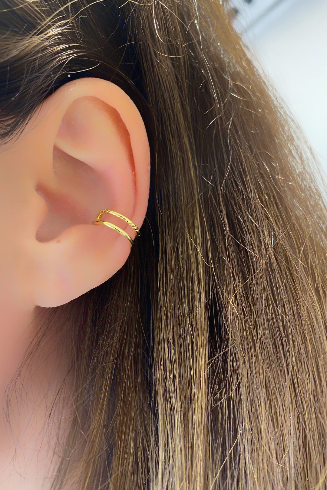 Top Ve Burgu Taşsız İki Sıra Gümüş Kıkırdak Küpe