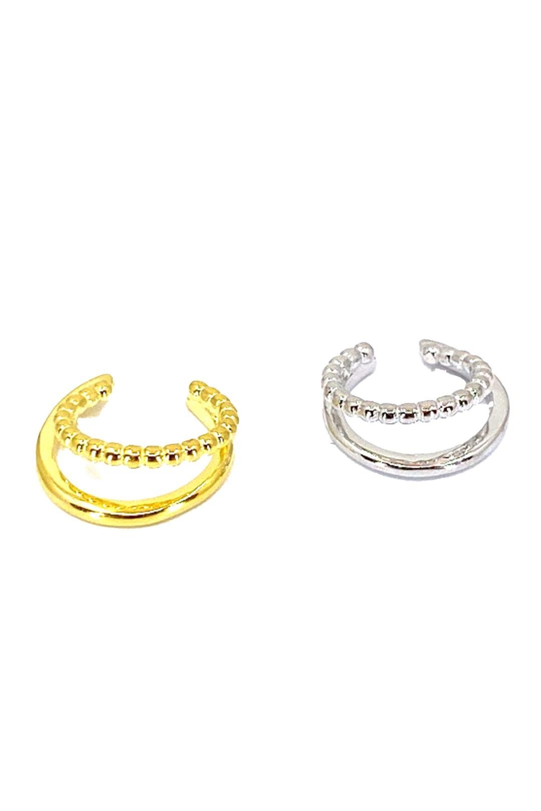 Top Ve Düz İki Sıra Gümüş Sıkıştırmalı Kıkırdak Küpe