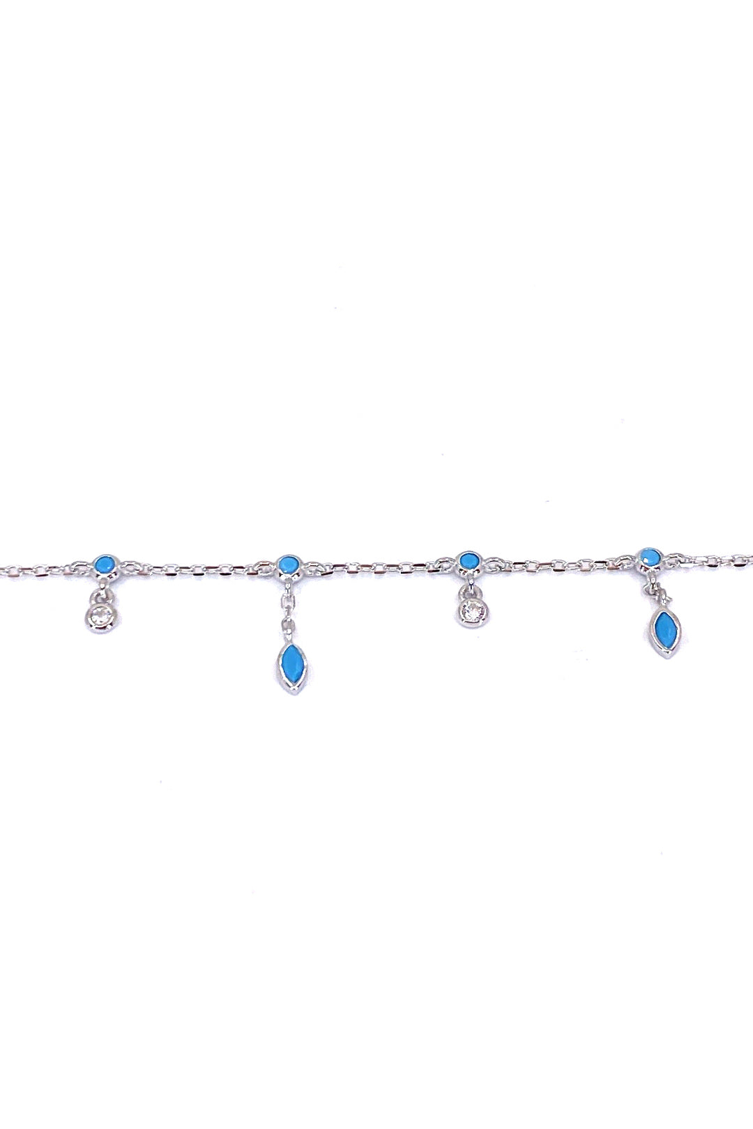 Turkuaz Beyaz Tohum Ve Markiz Sallantılı Gümüş Bileklik
