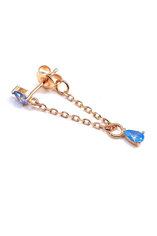 Turkuaz İki Damla Gümüş Zincir Klips Küpe
