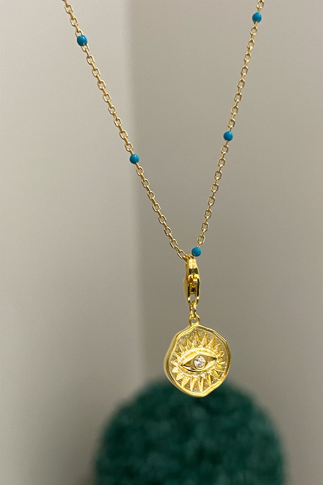 Turkuaz Mineli Göz Detay Gümüş Kolye
