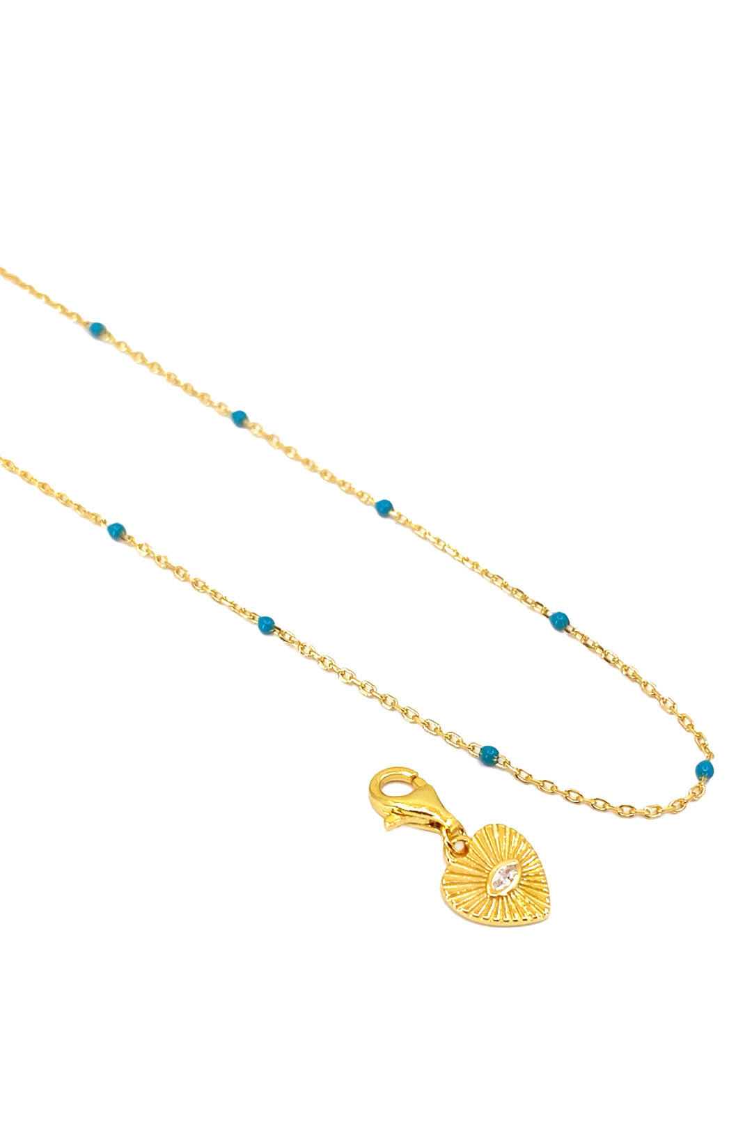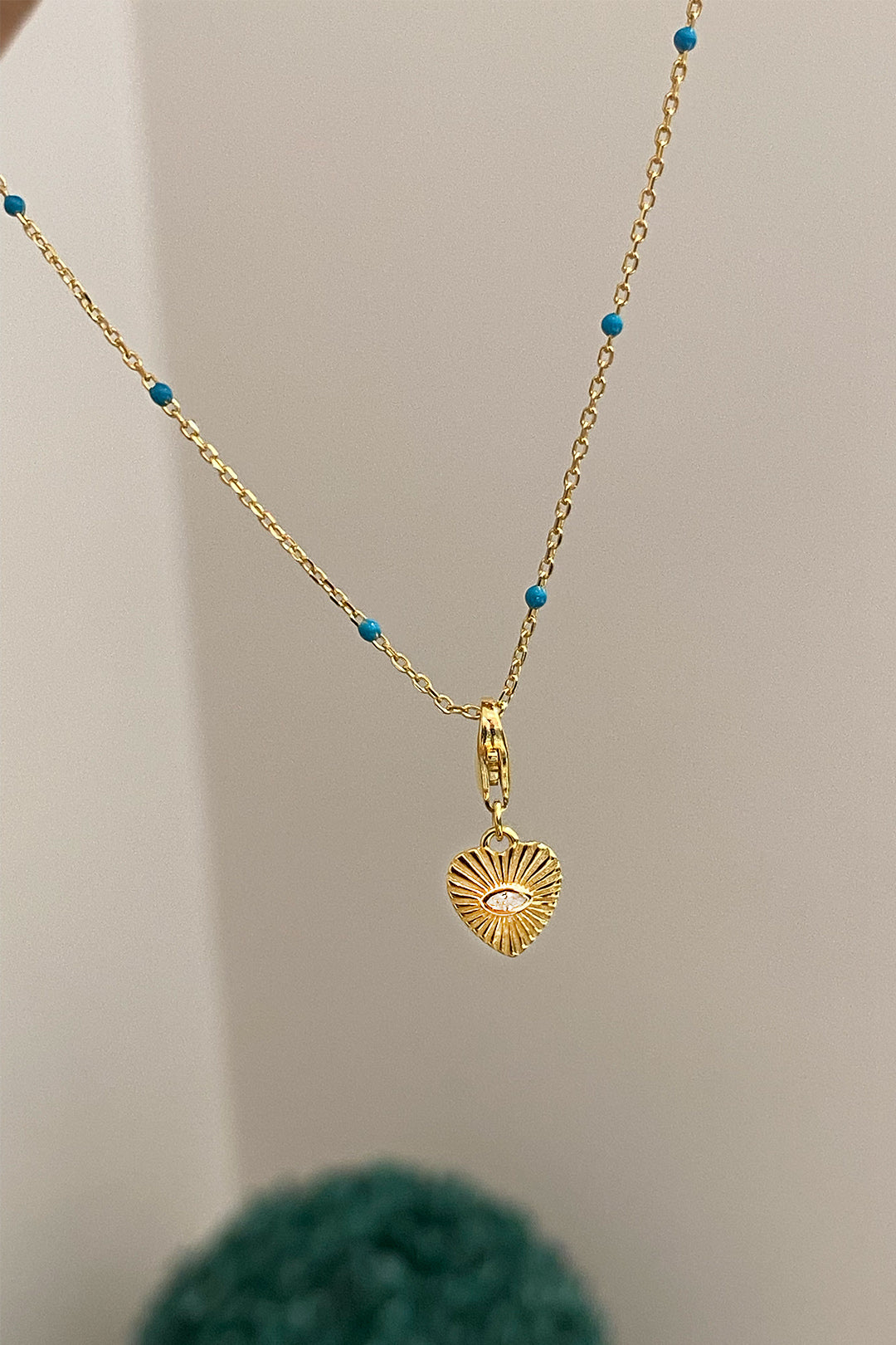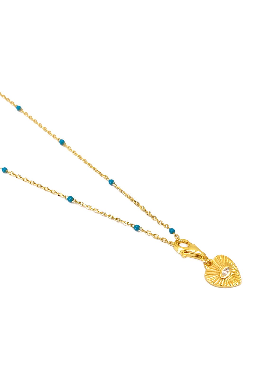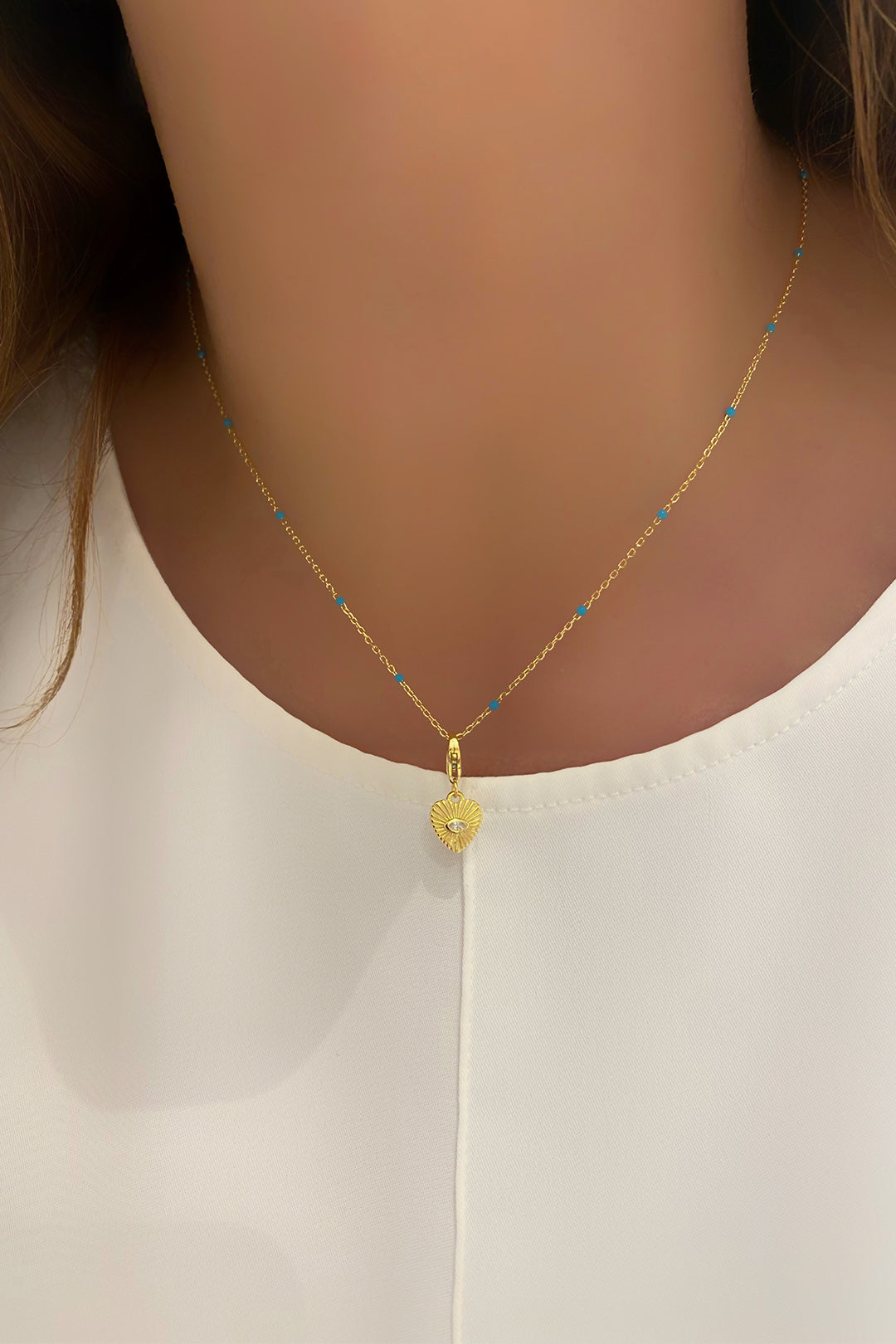 Turkuaz Mineli Kalp Detay Gümüş Kolye