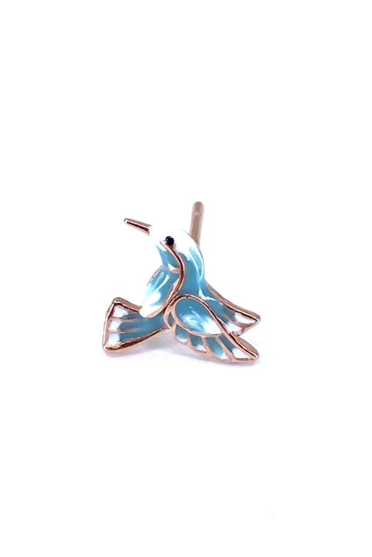 Turkuaz Mineli Kuş Gümüş Çivili Küpe
