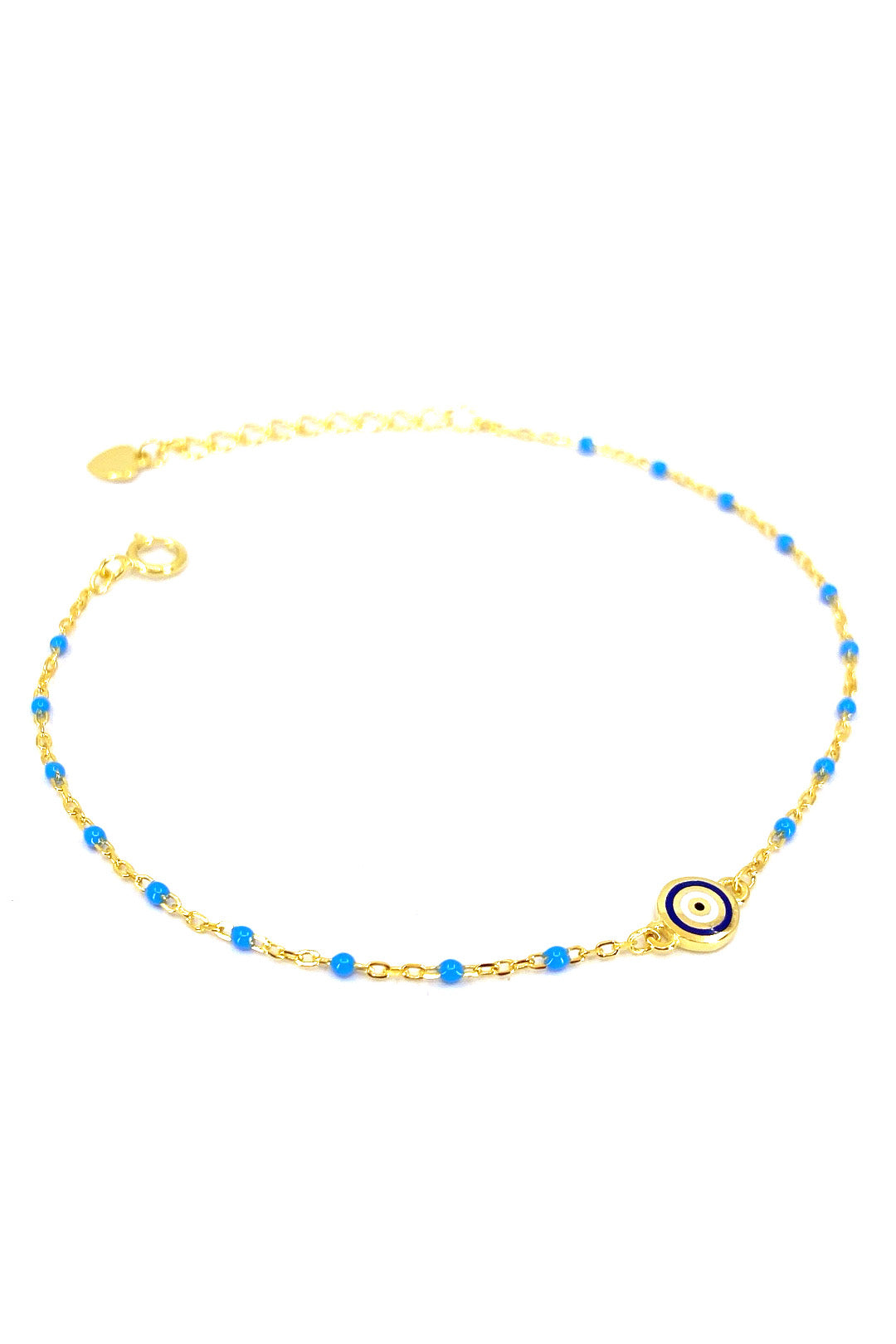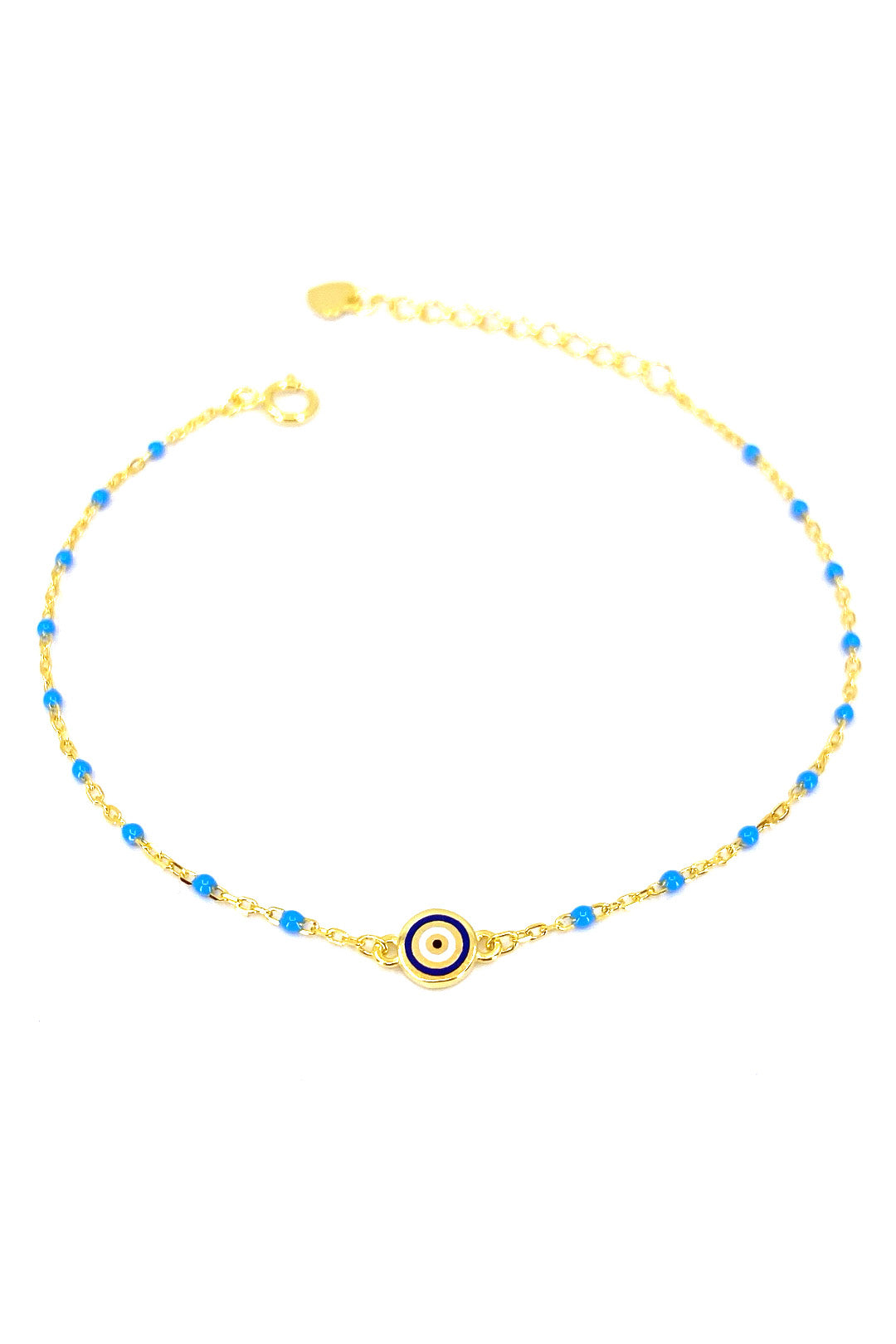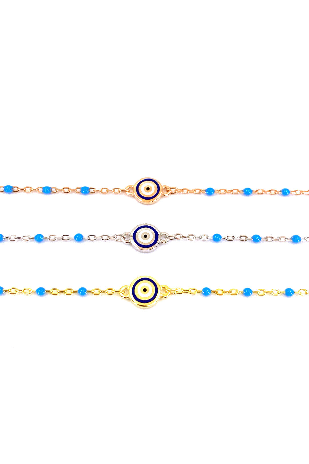 Turkuaz Mineli Tek Yuvarlak Göz Gümüş Bileklik