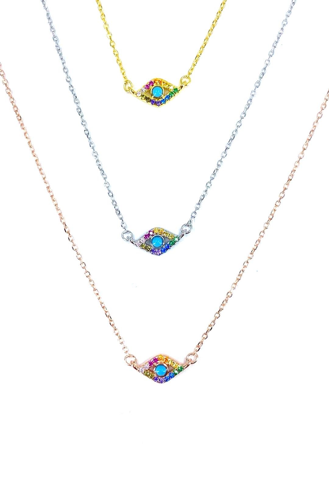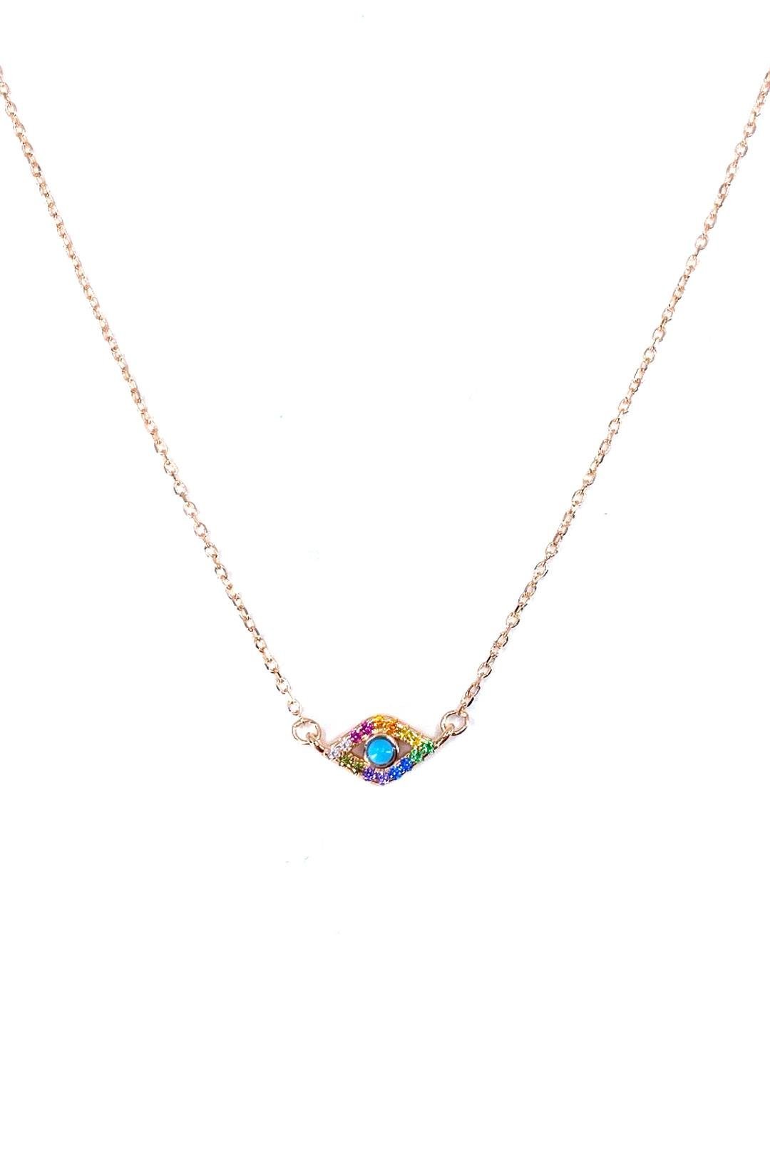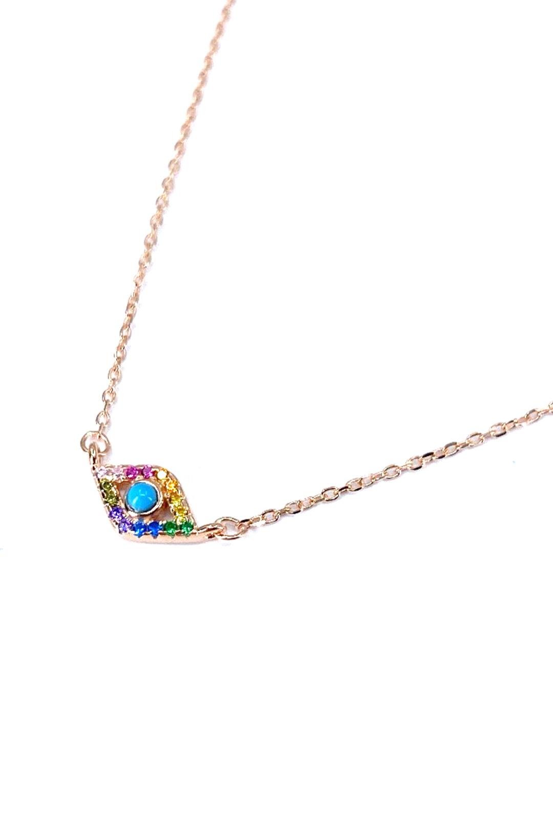 Turkuaz Taş Detay Rainbow Göz Gümüş Kolye