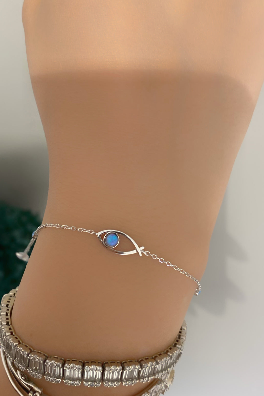 Turkuaz Tohum ve Balık Gümüş Bileklik