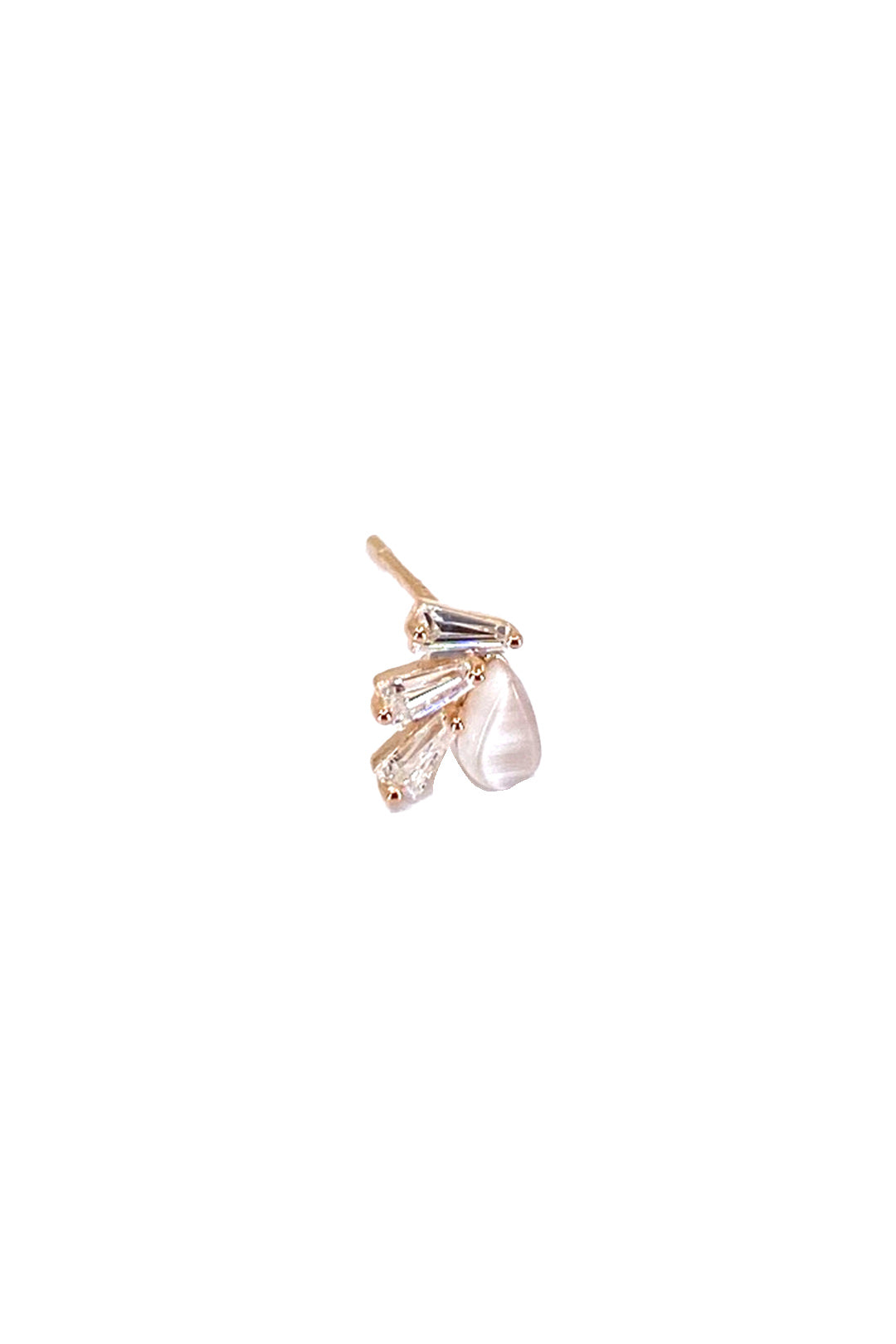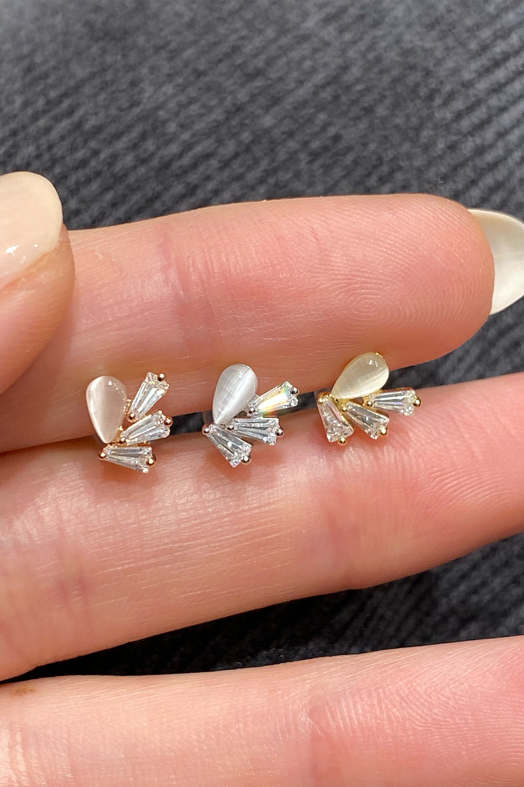Üç Baget Ve Damla Ay Taşı Gümüş Çivili Küpe