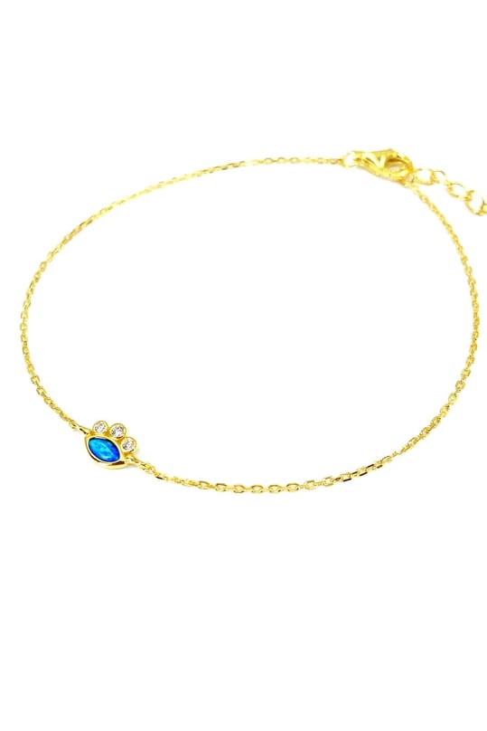 Üç Beyaz Tohum Mavi Opal Göz Gümüş Halhal
