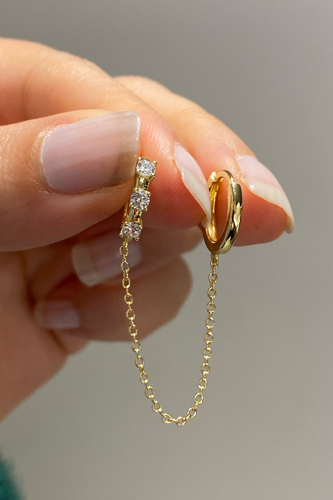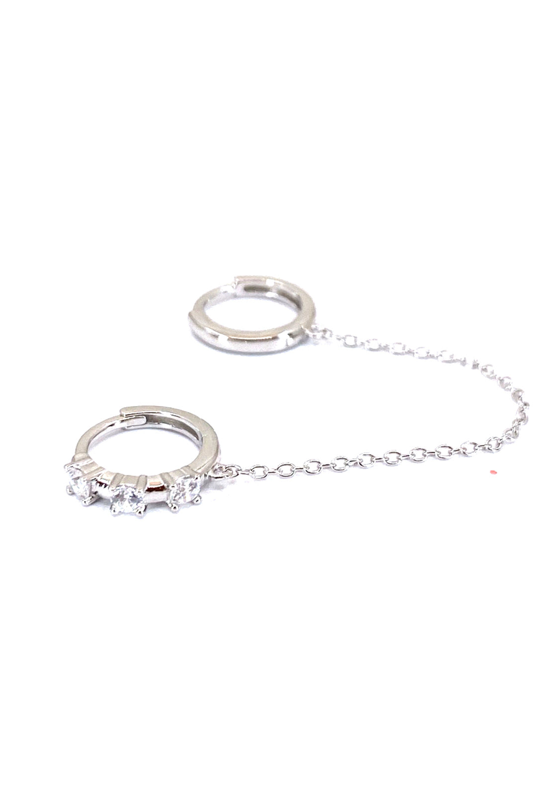 Üç Taş Ve Taşsız İkili Gümüş Halka Küpe
