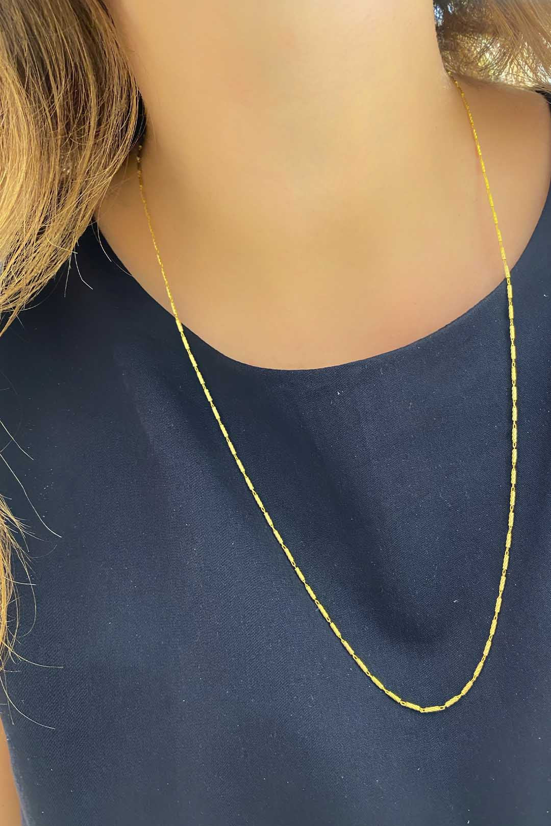 Üç Tırtıklı Sosis Gümüş Zincir Kolye 60 cm