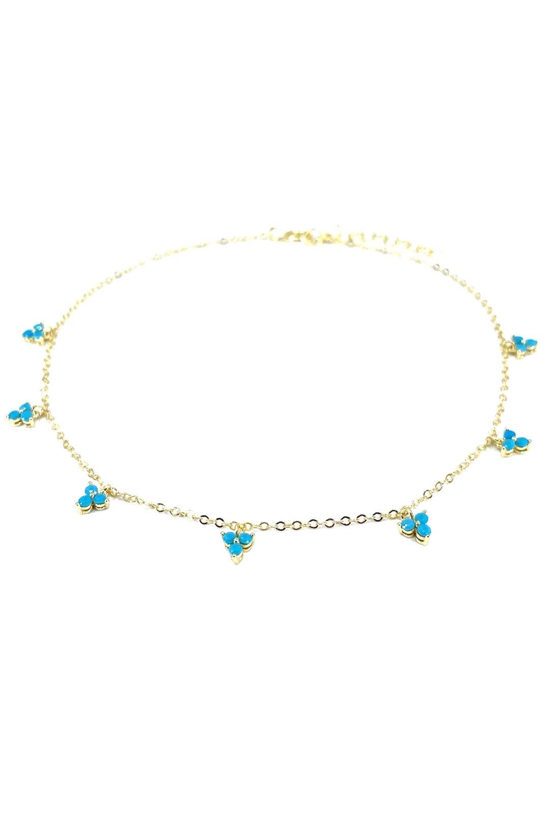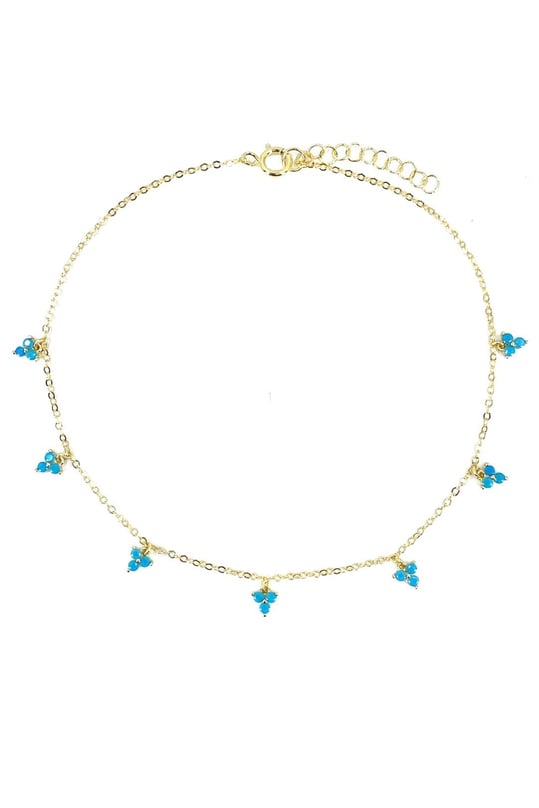 Üç Turkuaz Üçgen Sallantılı Gümüş Halhal