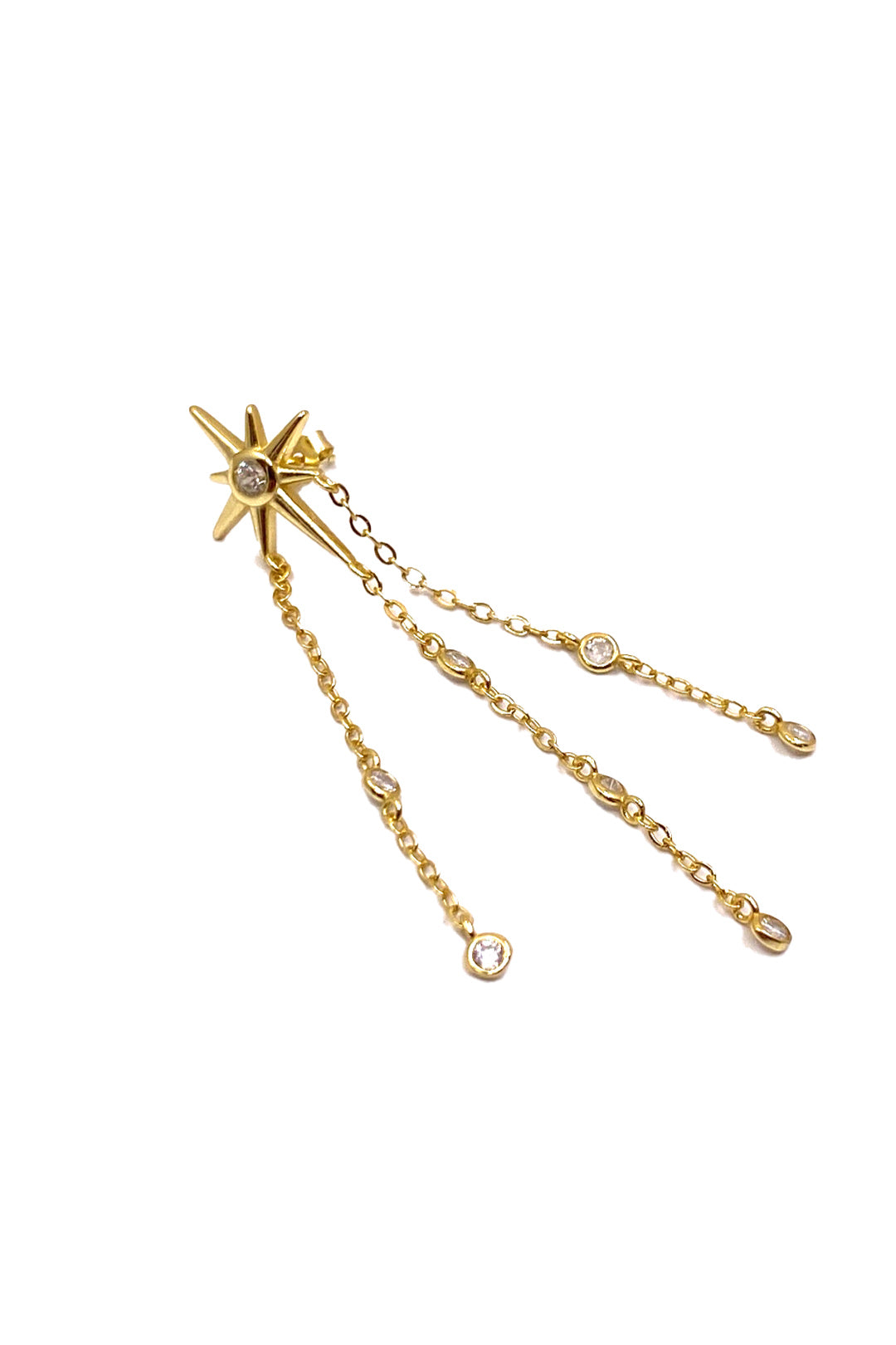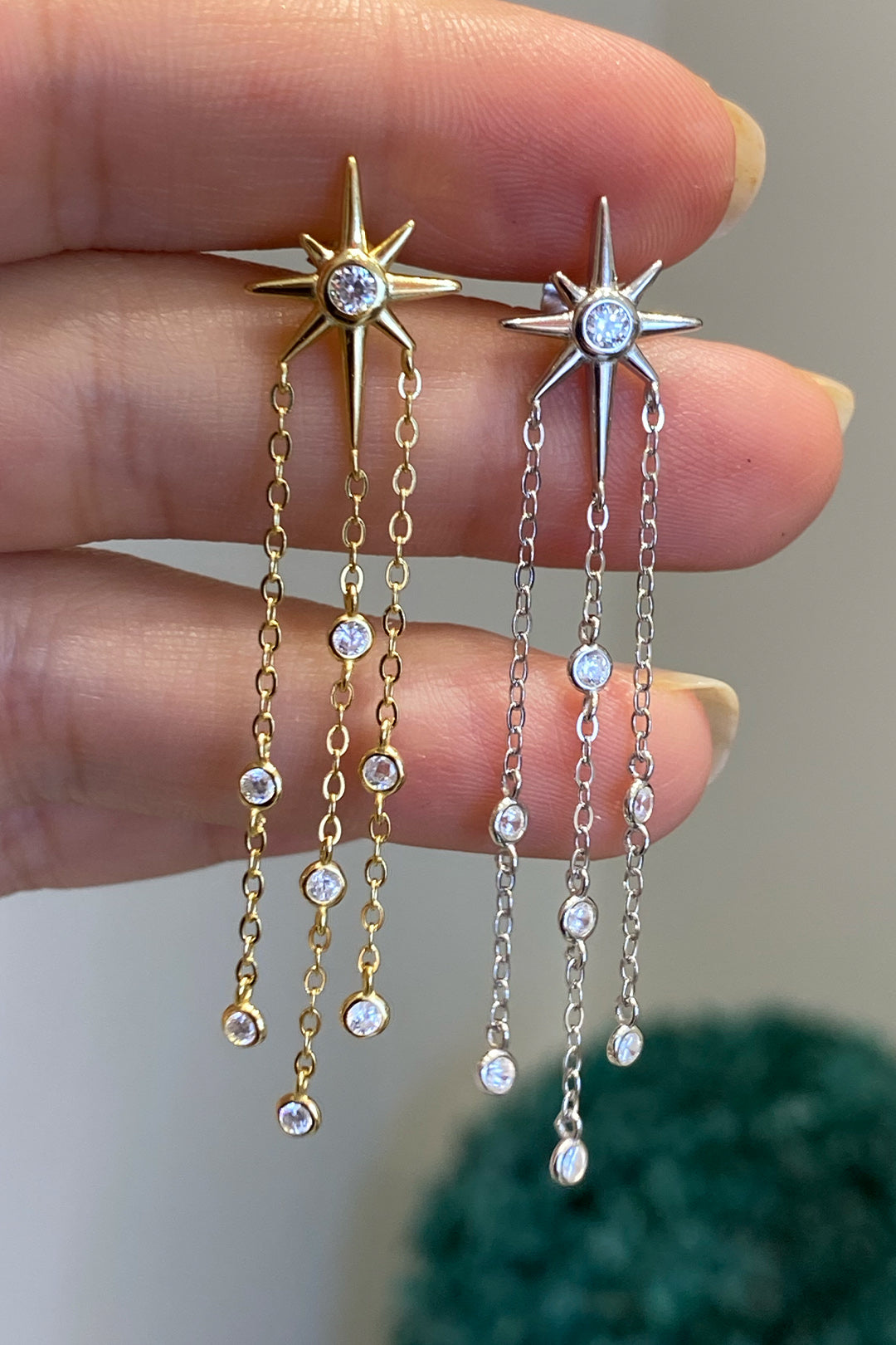 Üç Zincir Sallantılı Kutupyıldızı Gümüş Küpe