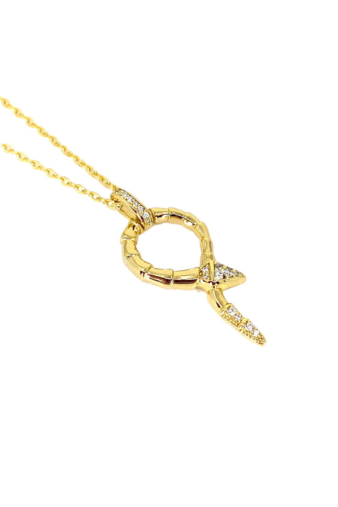 Uçları Taşlı Yılan Desen Gümüş Kolye
