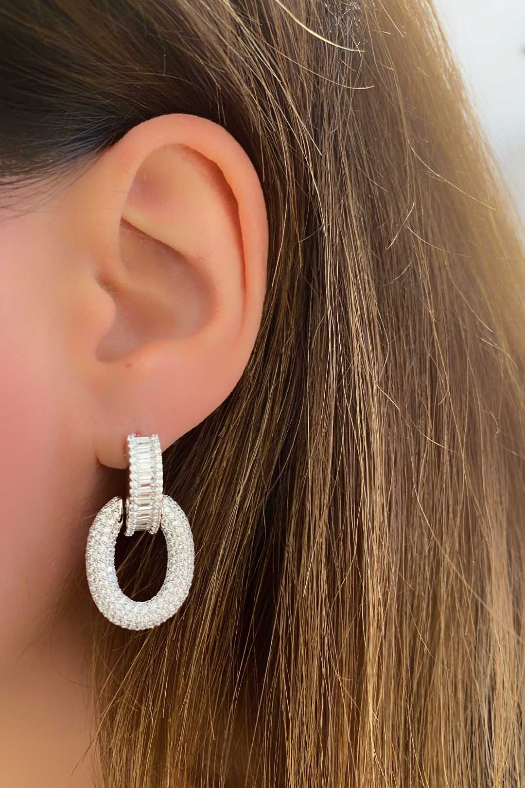 Vip Baget Ve Çember Taşlı Gümüş Küpe