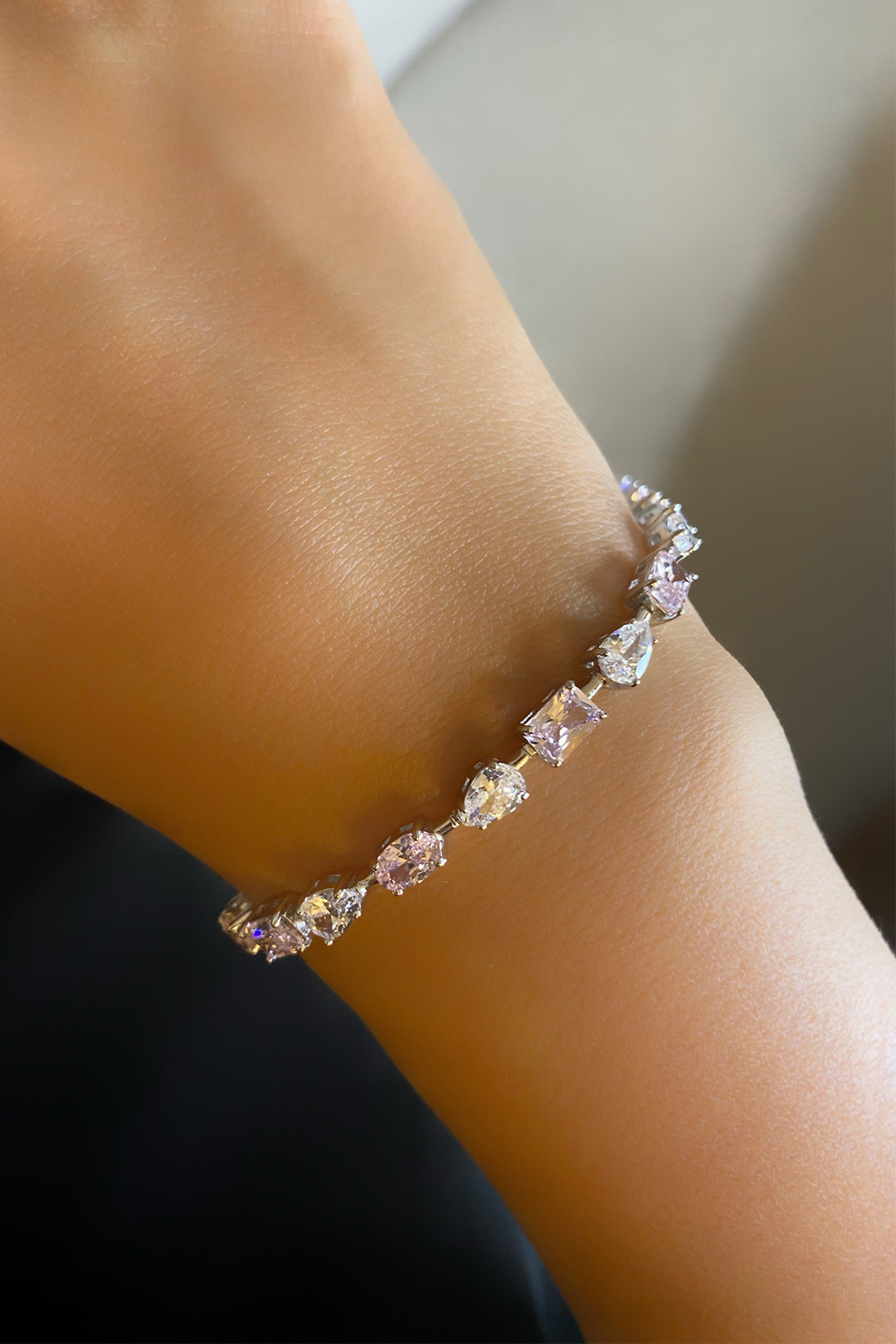 Vip Beyaz Pinky Kalp Baget Oval Damla Gümüş Suyolu Bileklik
