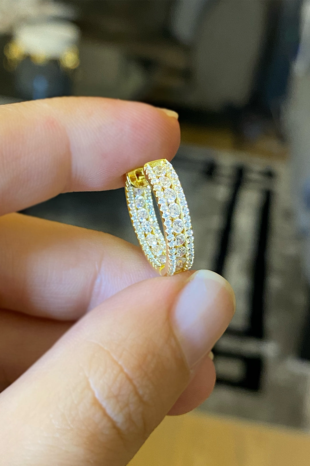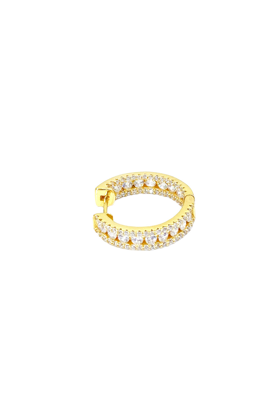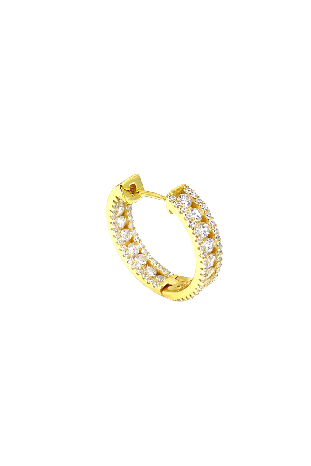 Yanları Taş Sıralı Taşlı Gümüş Halka Küpe