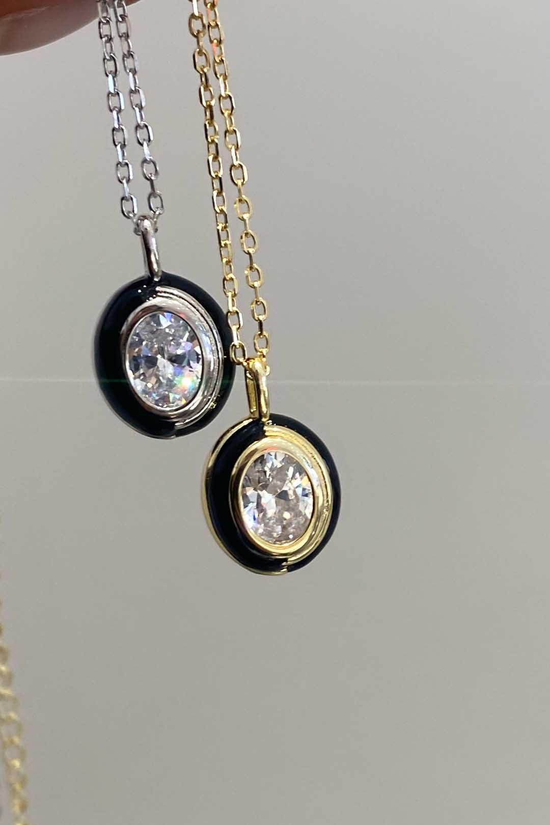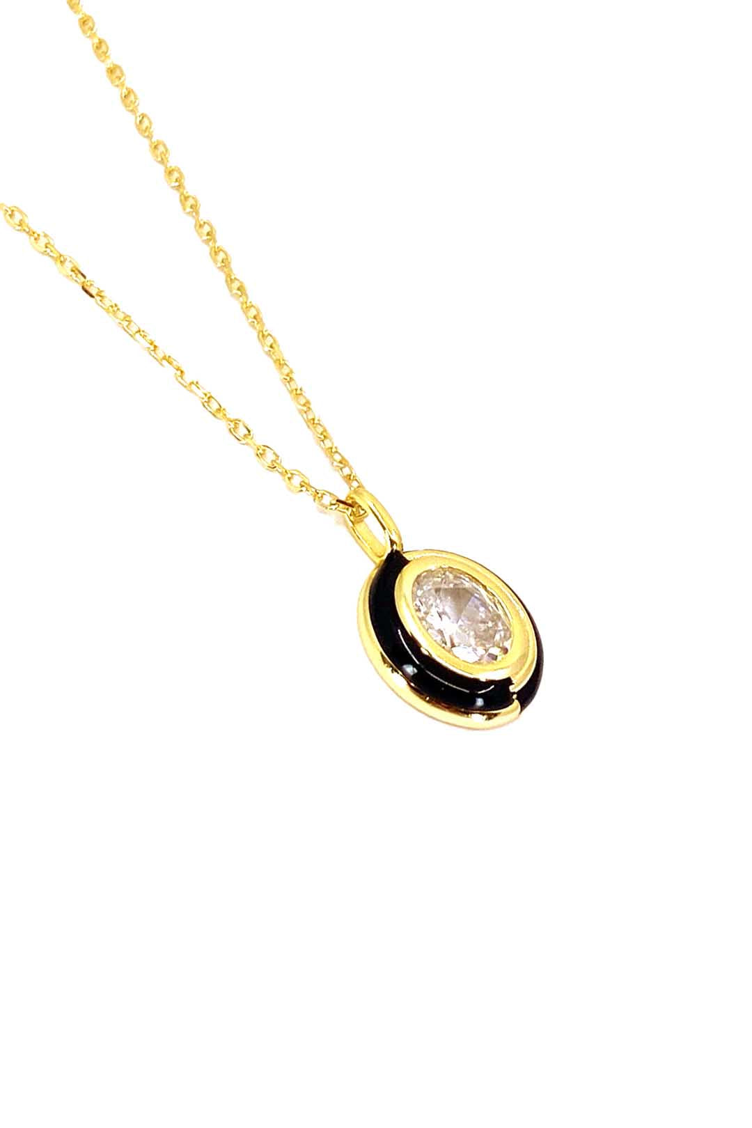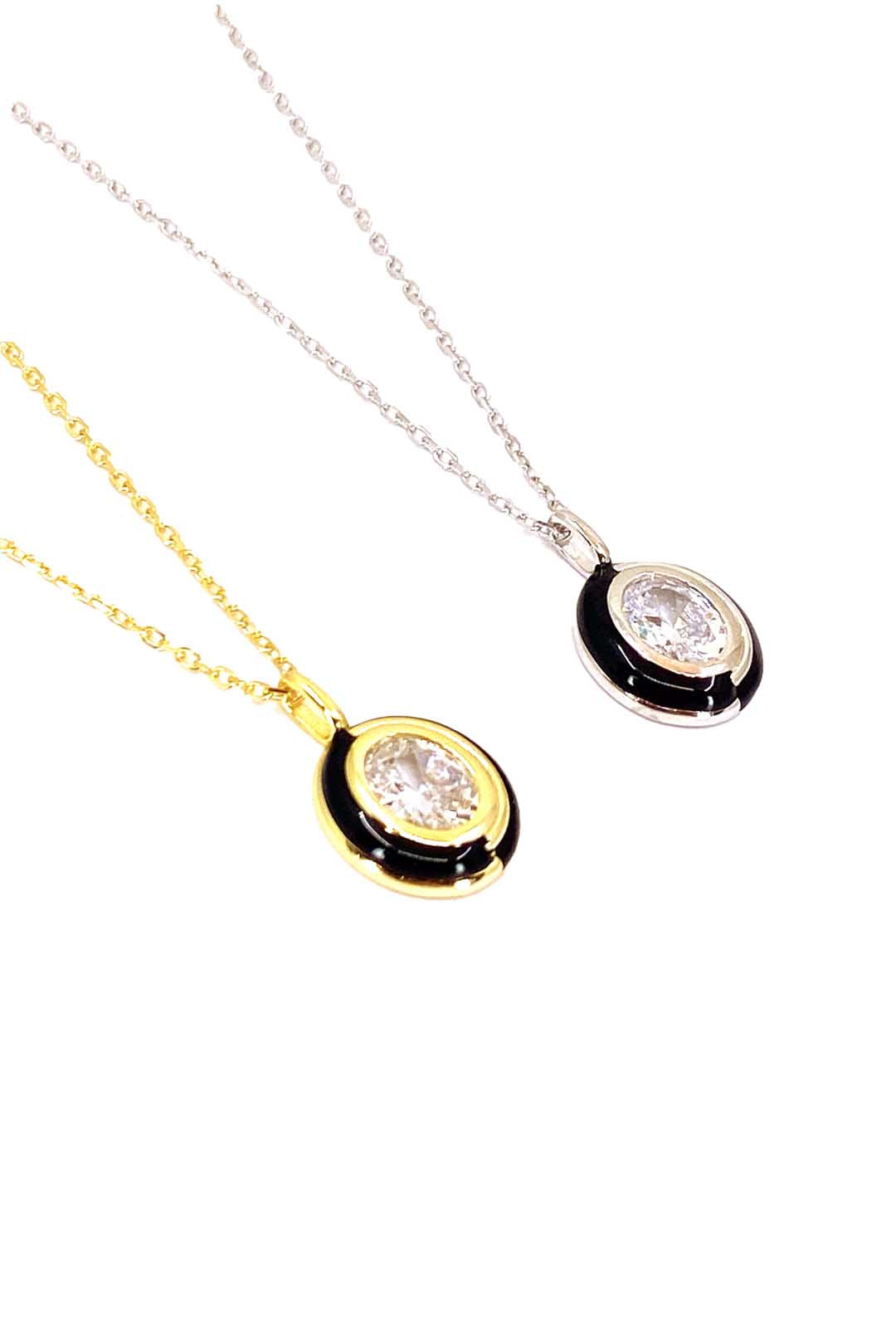 Yarım Siyah Mineli Oval Gümüş Kolye