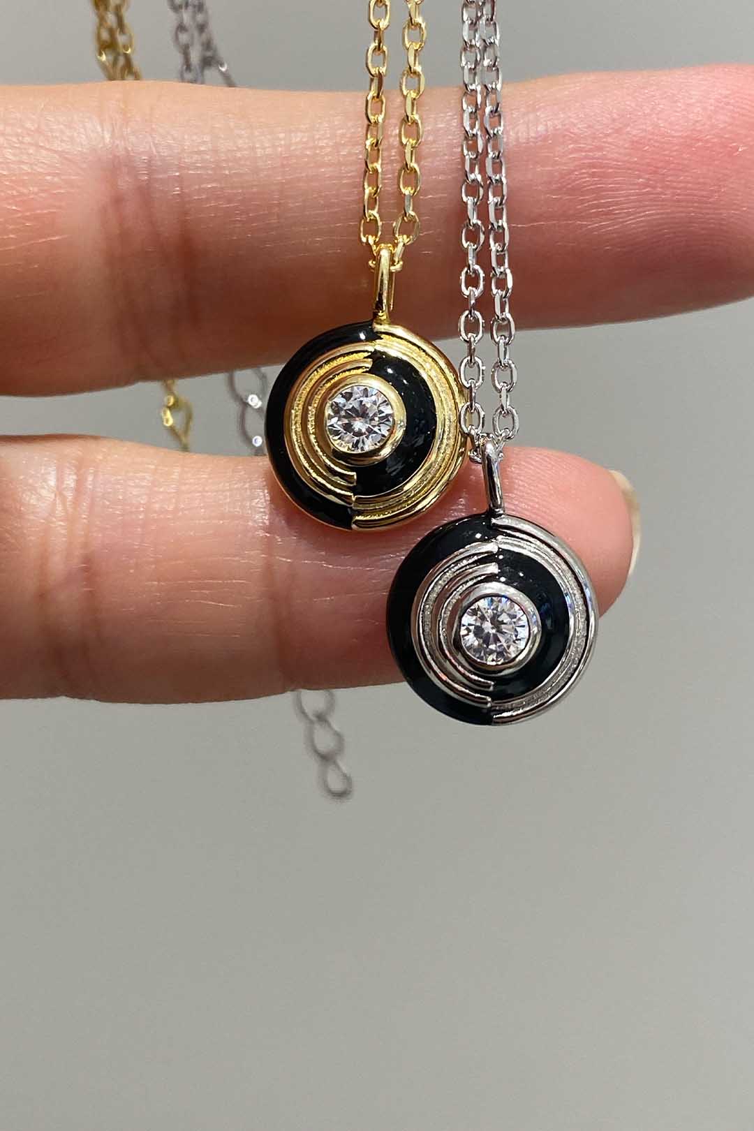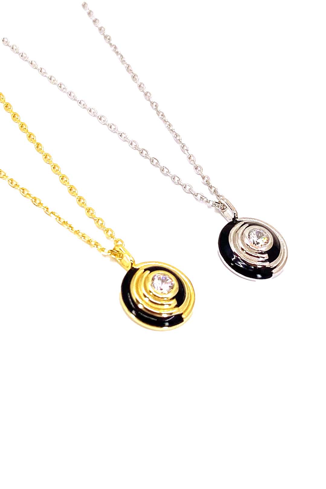 Yarım Siyah Mineli Salyangoz Gümüş Kolye
