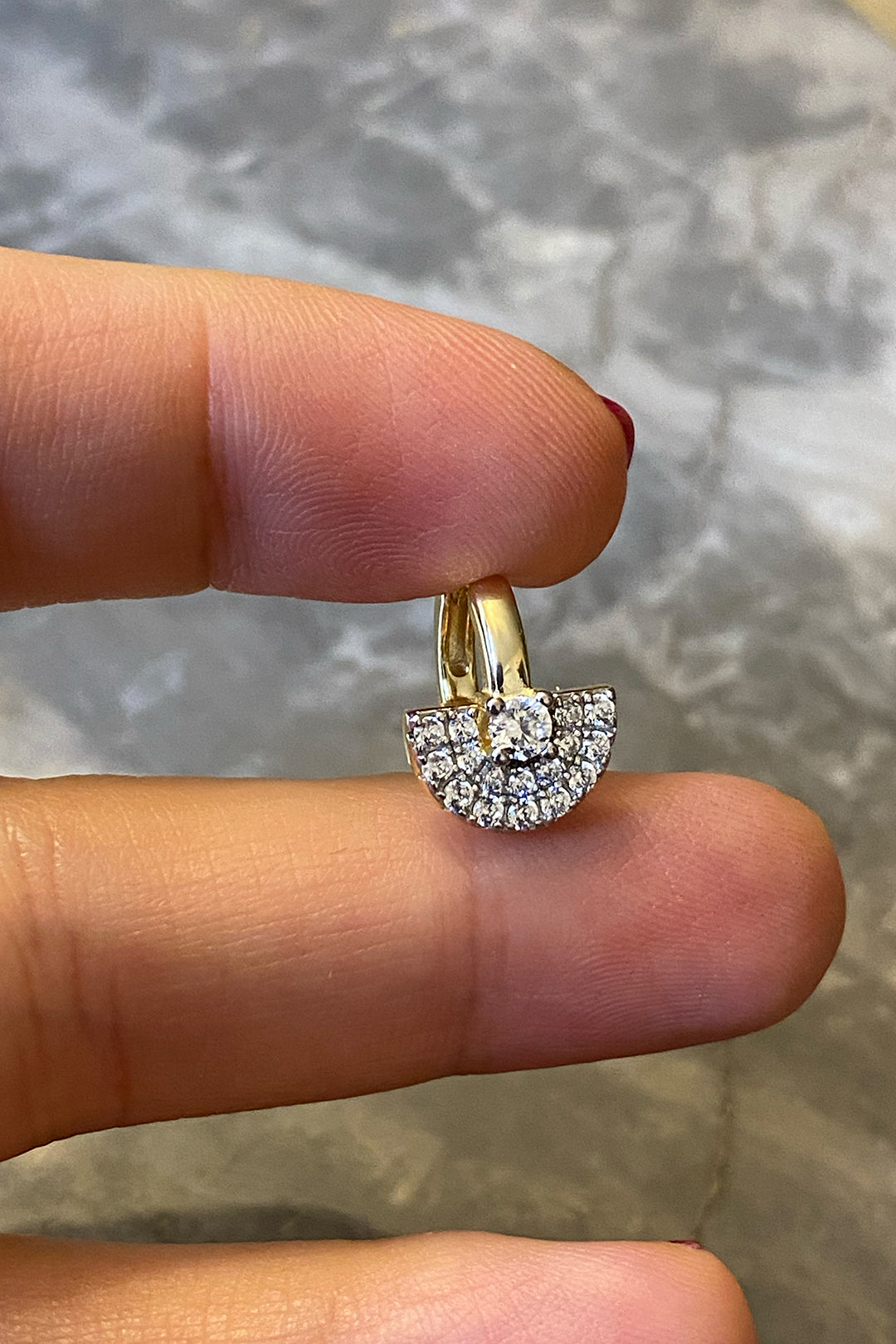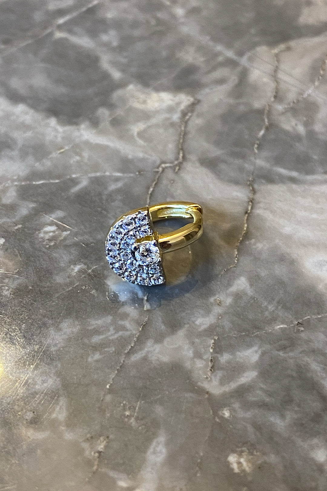 Yarım Yuvarlak Taşlı Gümüş Halka Küpe