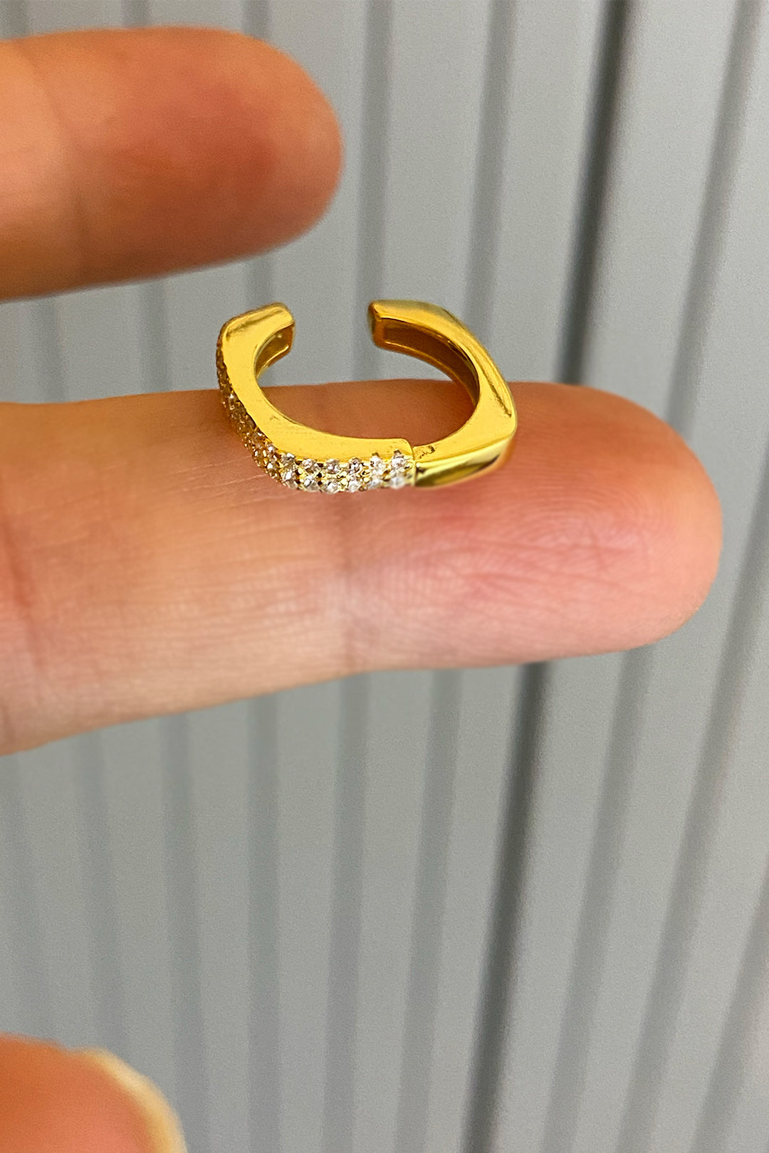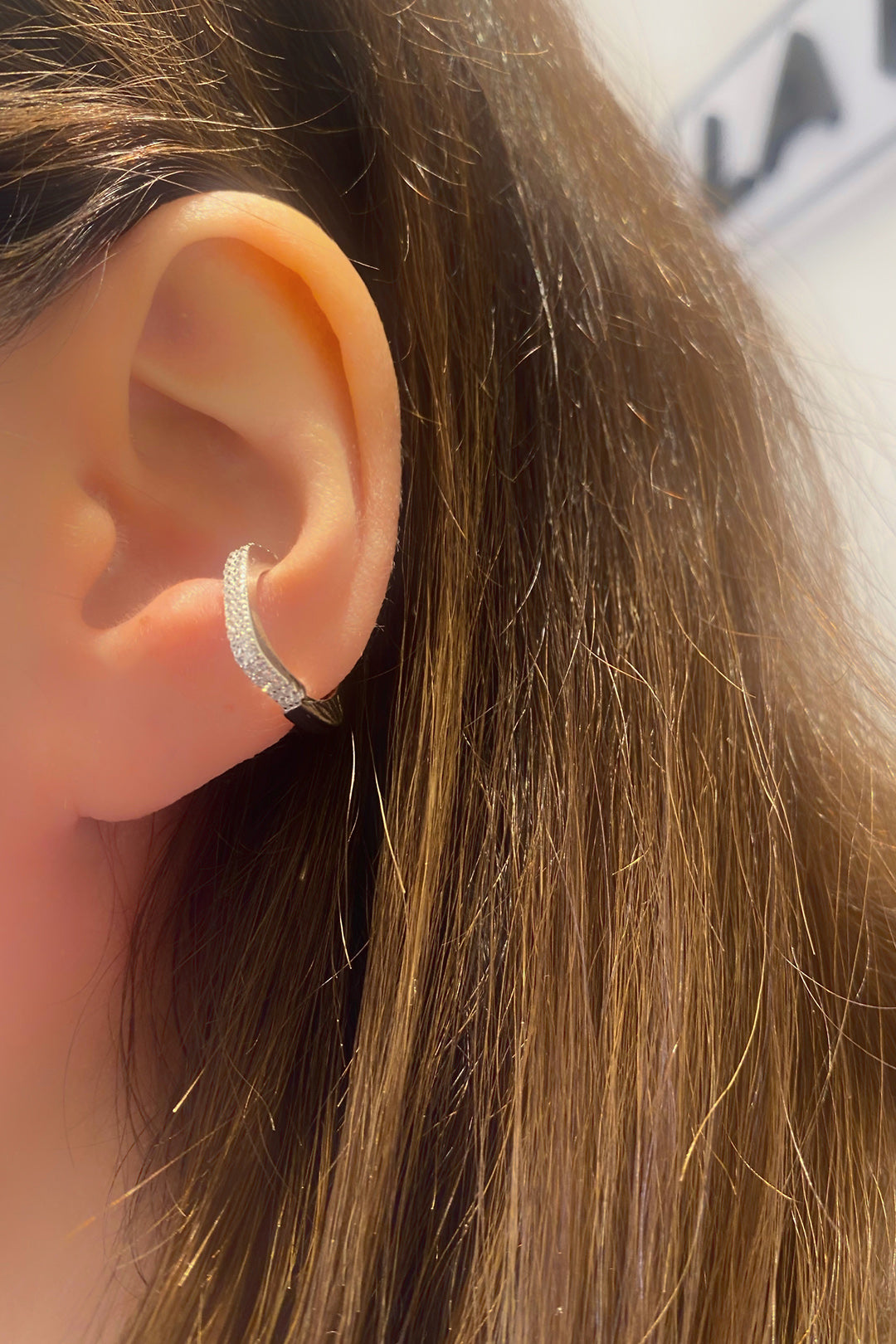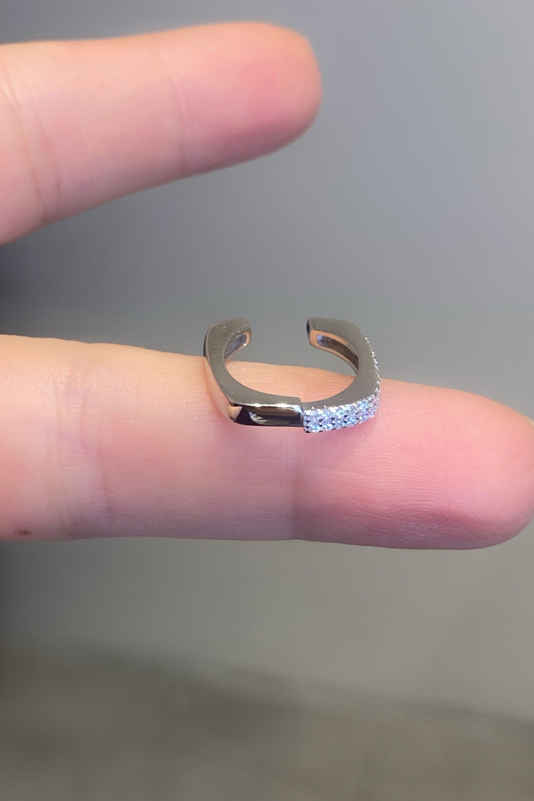 Yarısı Taşlı Kare Gümüş Kıkırdak Küpe