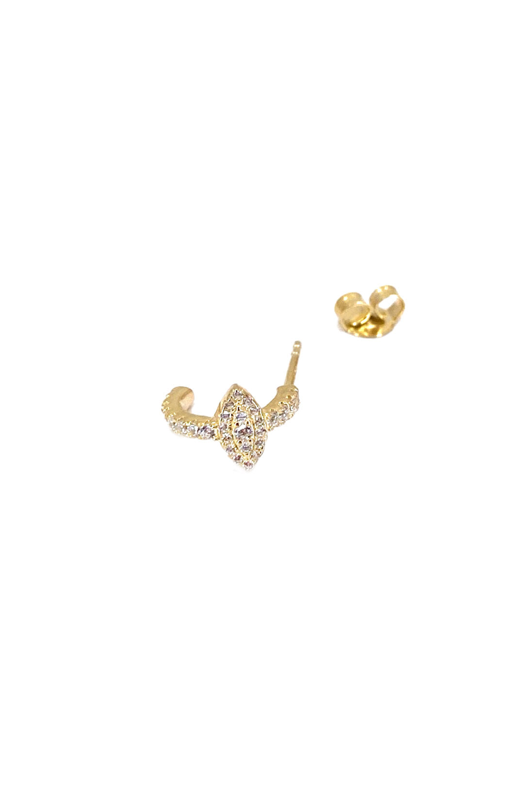 Yatay Taşlı Göz Gümüş Açık Halka Küpe